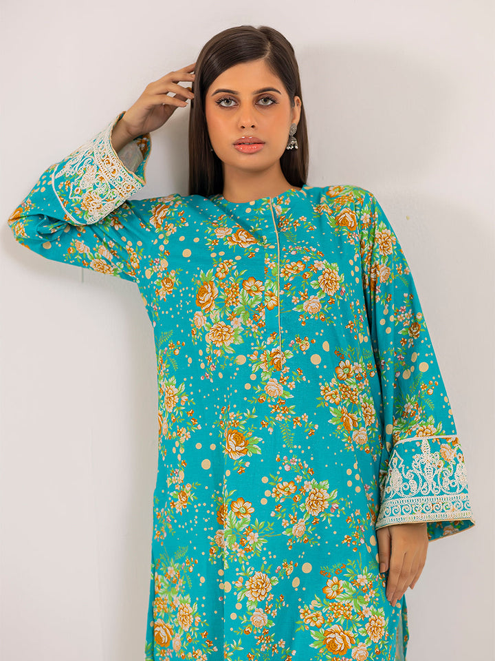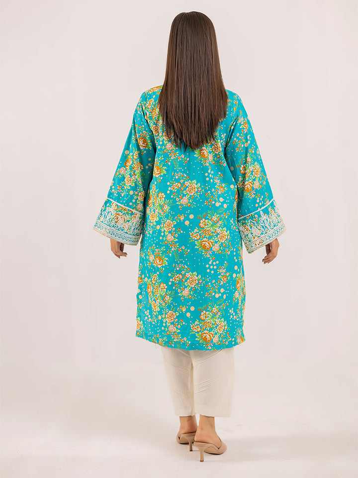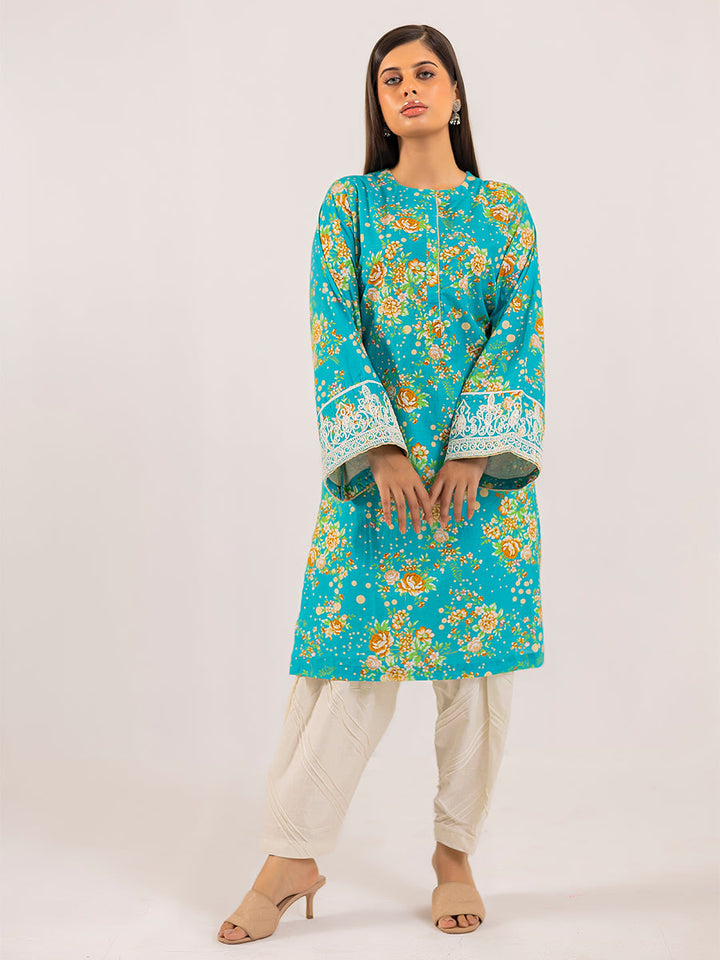 A blue and orange straight kurta with a clean, embroidered Sleeves, buttoned placket for a sleek and stylish look.