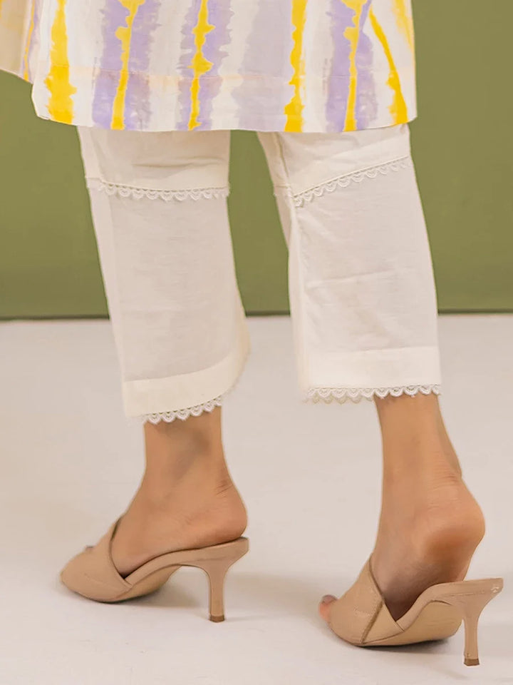 A timeless off-white shalwar with delicate lace detailing, your versatile go-to piece that pairs effortlessly with any color