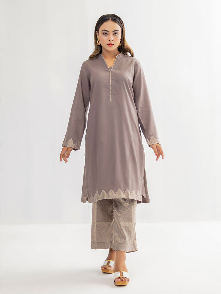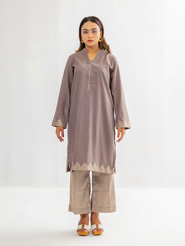Designed for daily wear, this light pink set includes a stylish screen-printed shirt and versatile pants, offering a harmonious blend of comfort and fashion