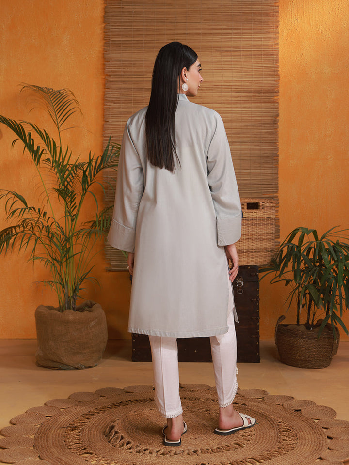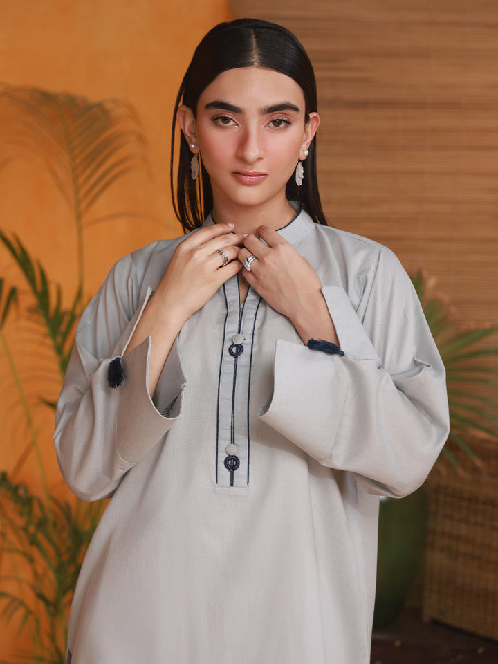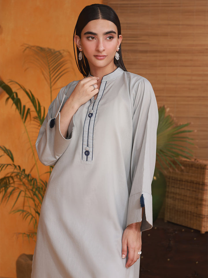 Solid Straight Shirt With Cuff On Sleeves And Tassel Detail On Sleeves And Button Detail On Neckline.