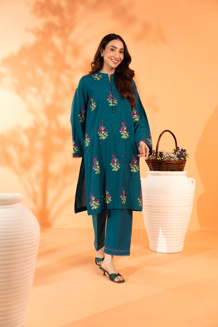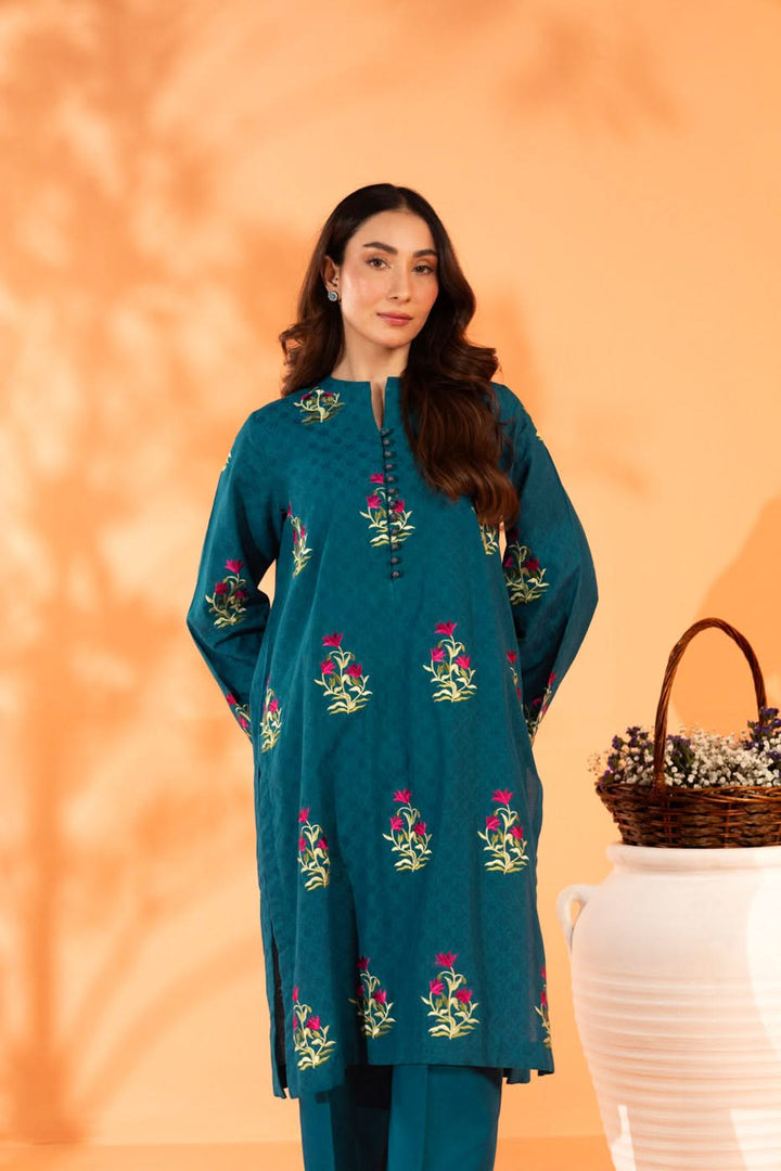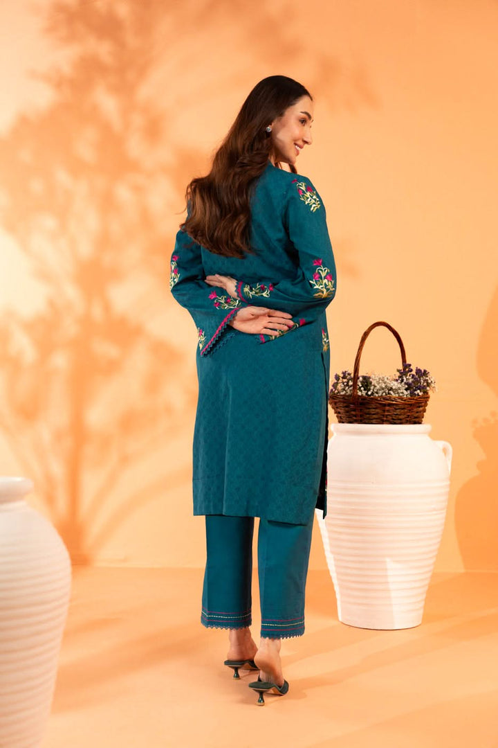 Embroidered Dyed Dobby Suit With Dyed Cambric Trousers