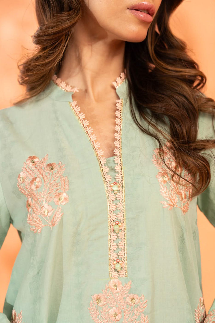 Embroidered Dyed Self Jacquard Suit With Dyed Cambric Trousers
