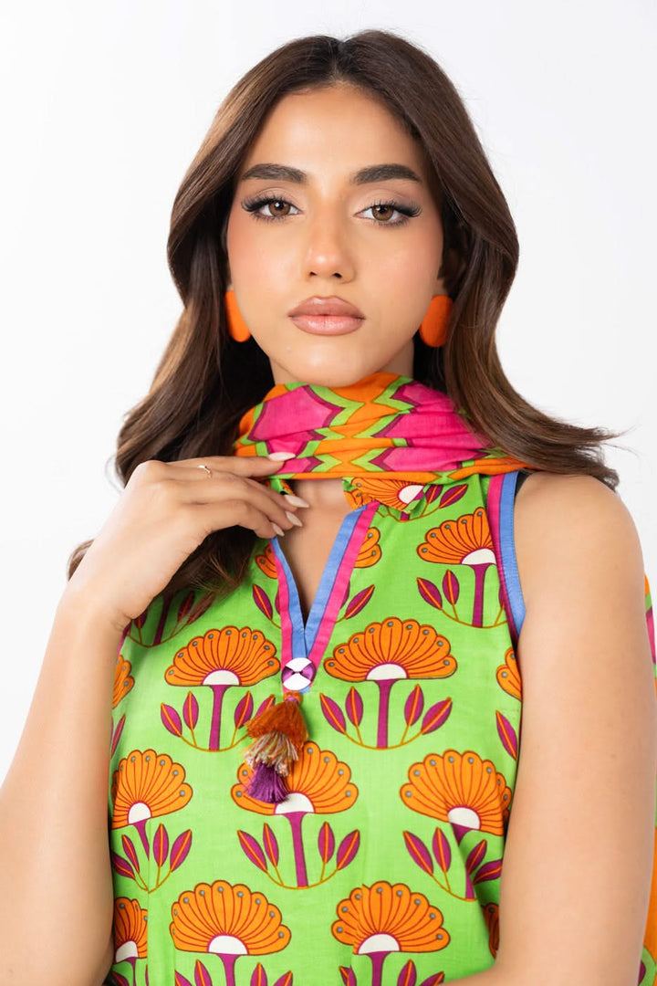 Printed Lawn Shirt With Silver Lawn Dupatta