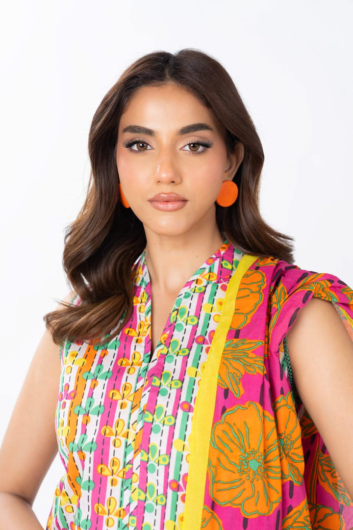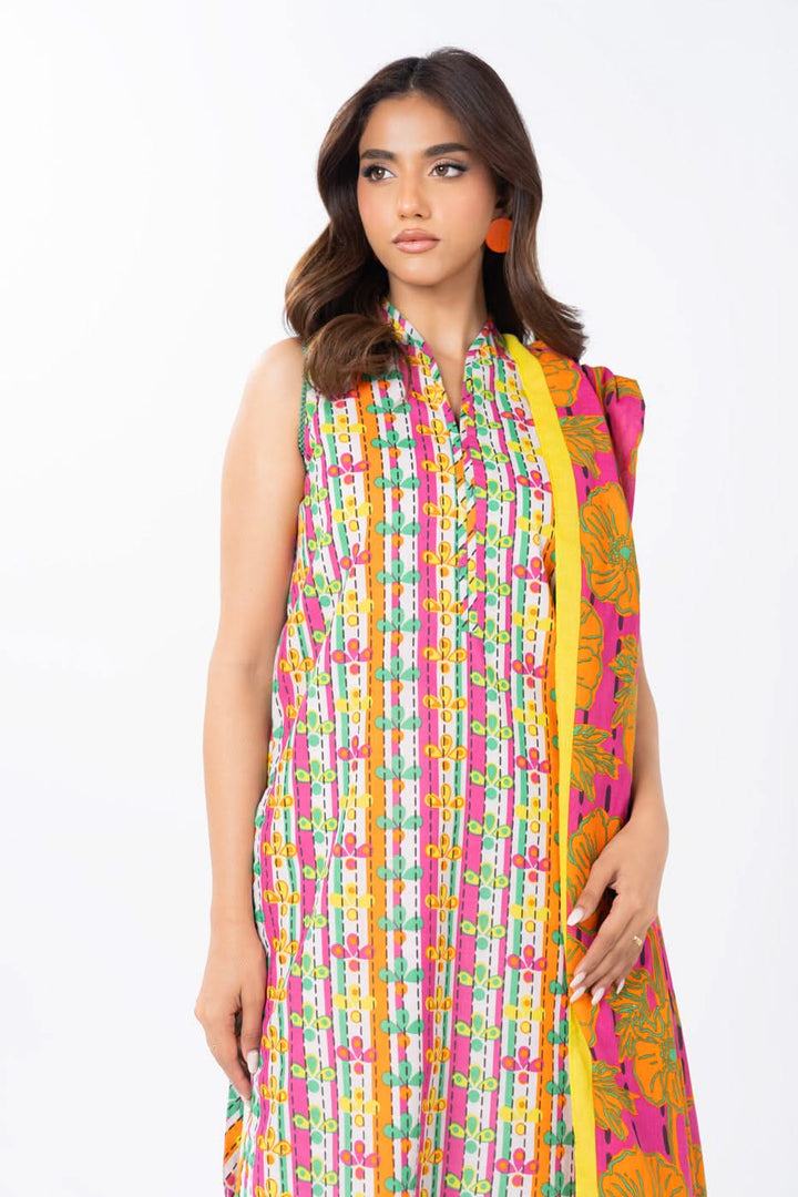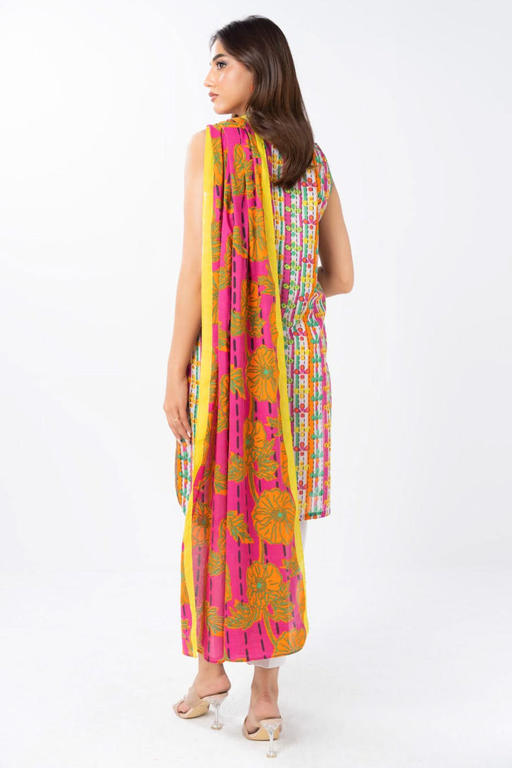 Printed Lawn Shirt With Silver Lawn Dupatta