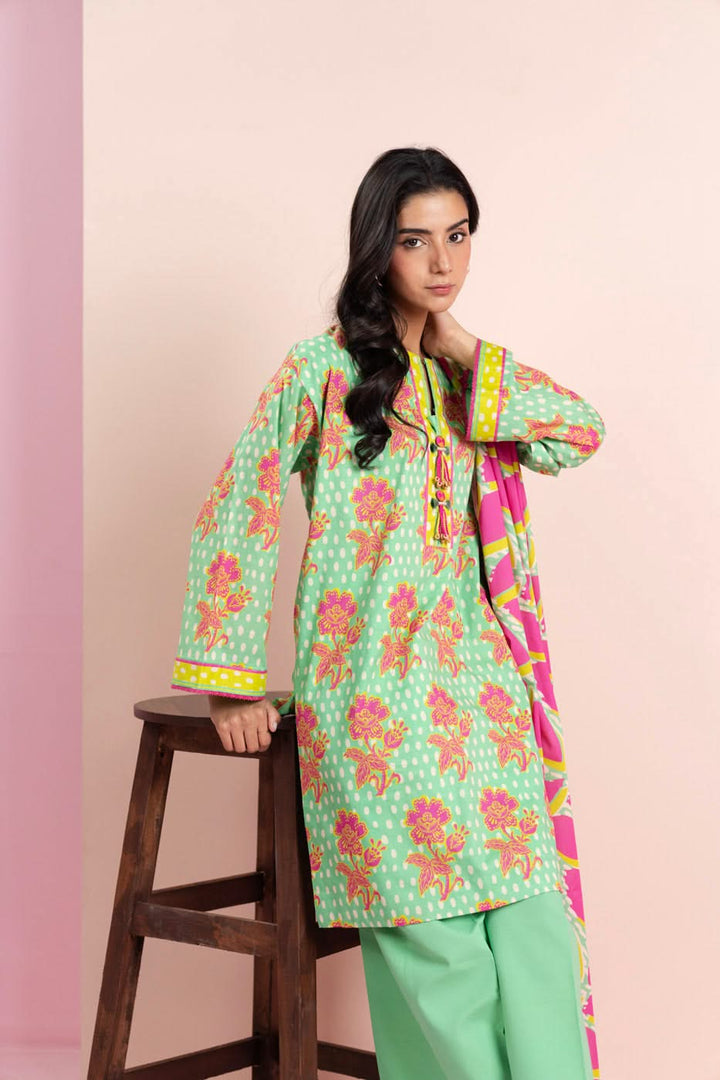 Printed Silver Lawn Suit With Silver Lawn Dupatta
