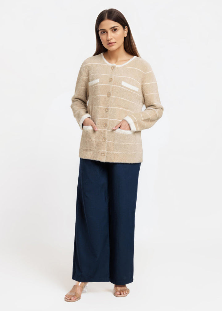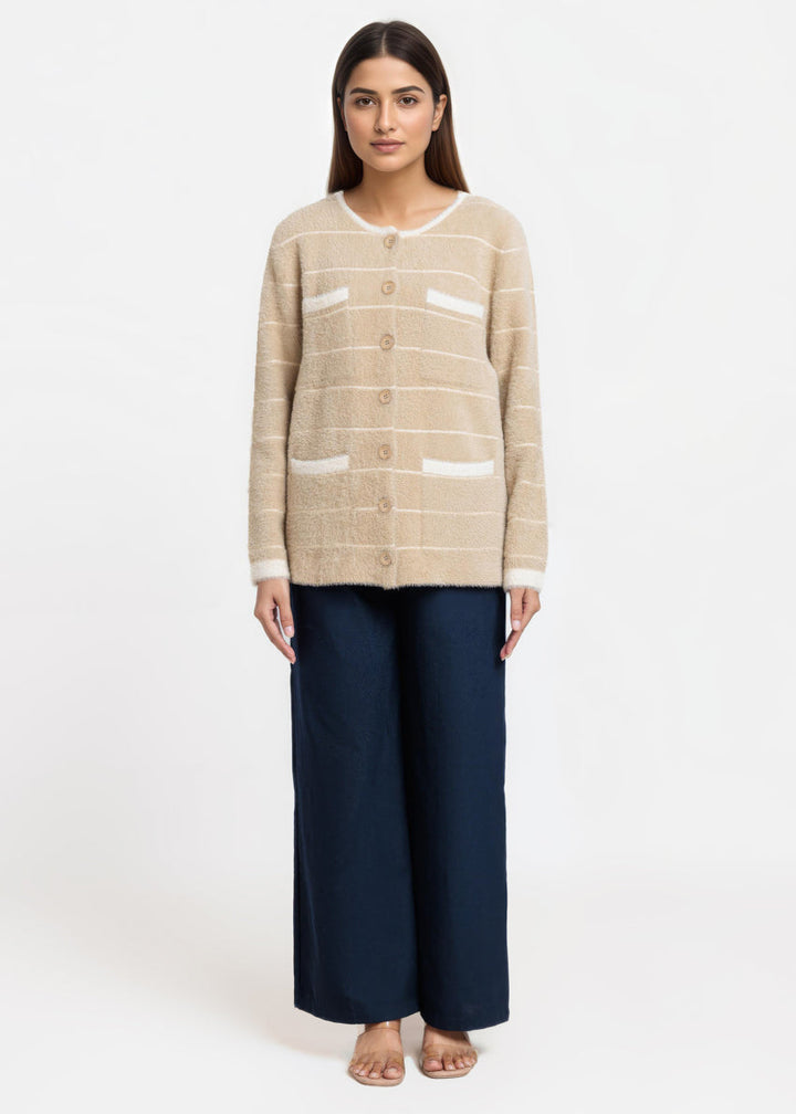 Apricot-Round Neck Full Sleeves Cardigan Sweater (25Y-004-67)