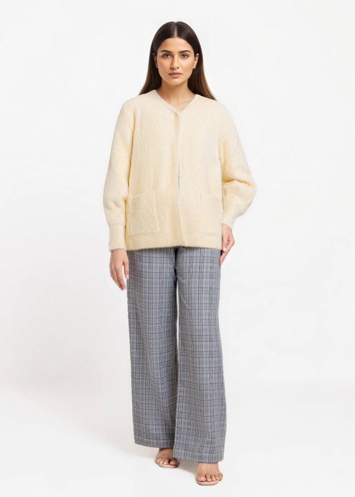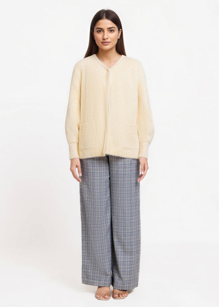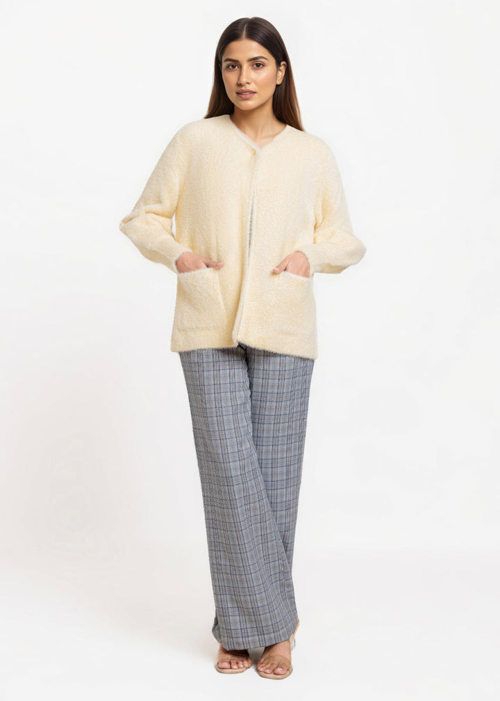 Cream-Round Neck Full Sleeves Cardigan Sweater (25Y-005-67)
