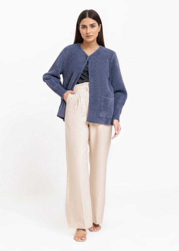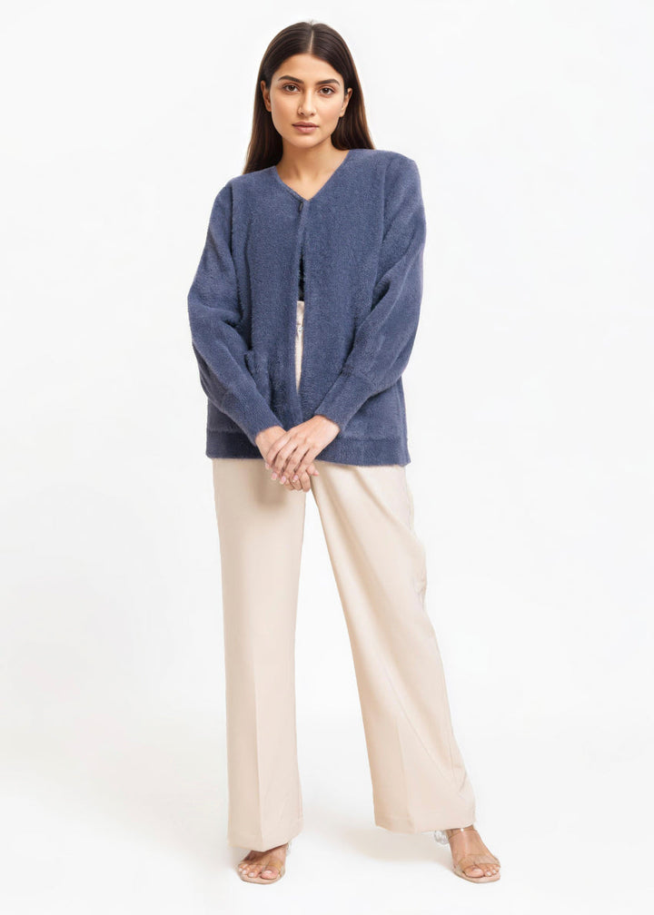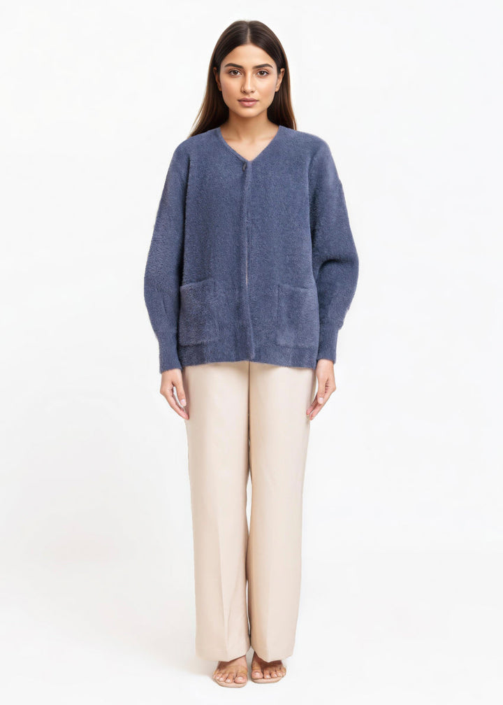Grey-Round Neck Full Sleeves Cardigan Sweater (25Y-005-67)