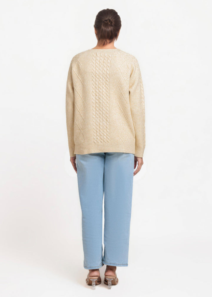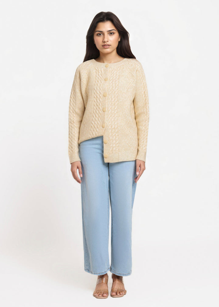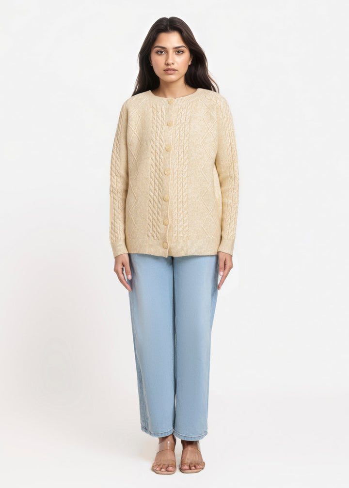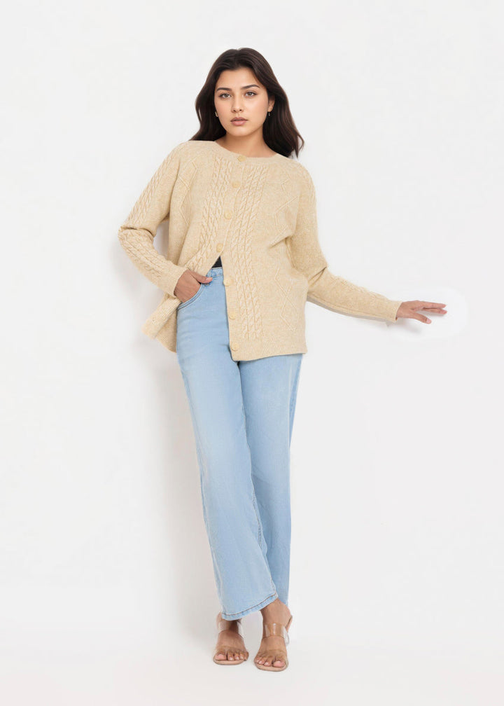 Beige-Round Neck Full Sleeves Cardigan Sweater (25Y-009-67)