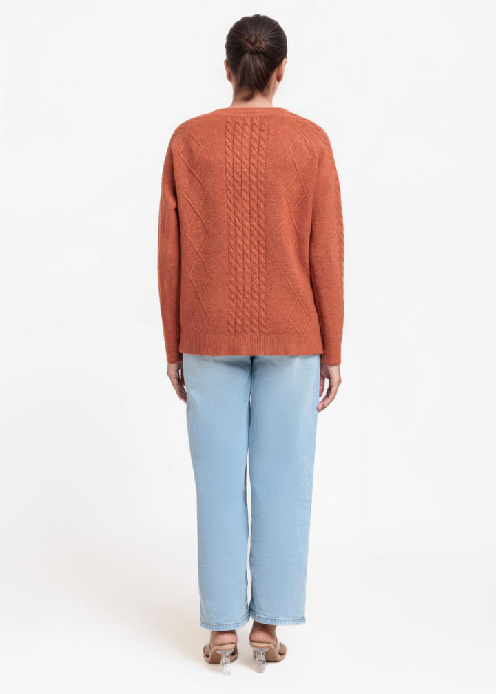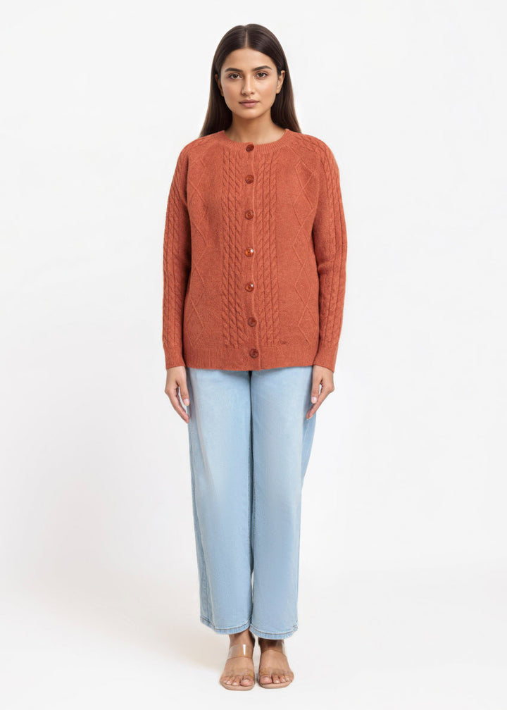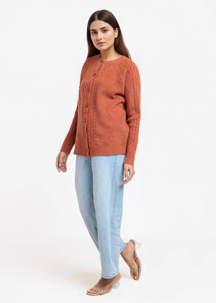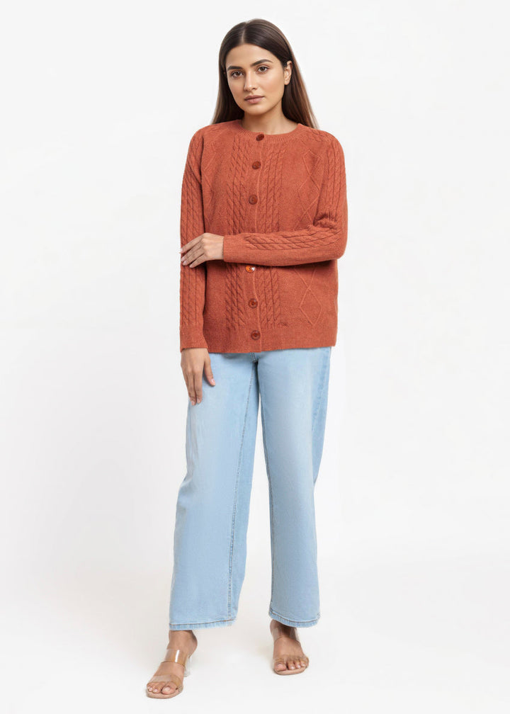 Rust-Round Neck Full Sleeves Cardigan Sweater (25Y-009-67)
