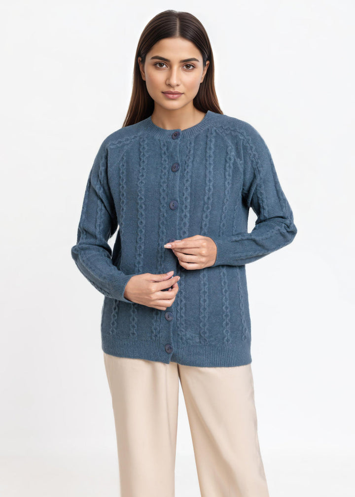 Green-Round Neck Full Sleeves Cardigan Sweater (25Y-012-67)