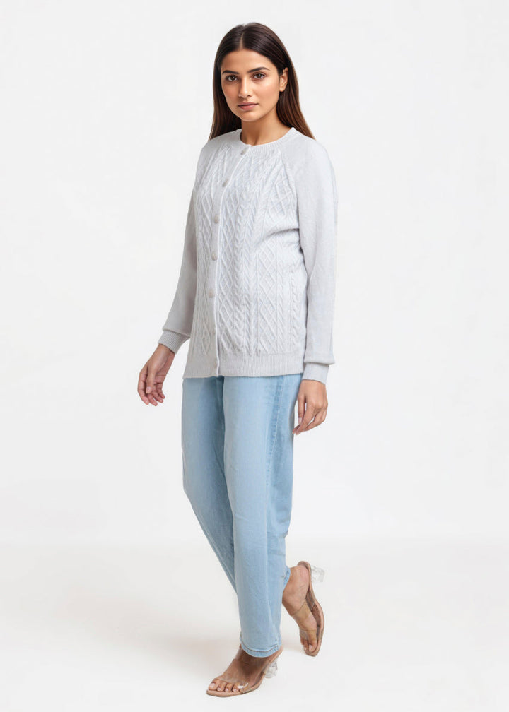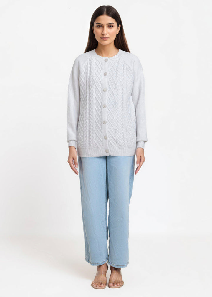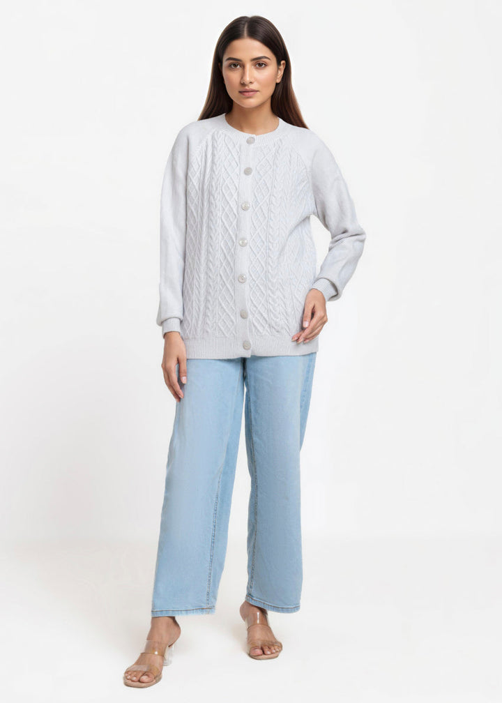 A-Grey-Round Neck Full Sleeves Cardigan Sweater (25Y-014-67)