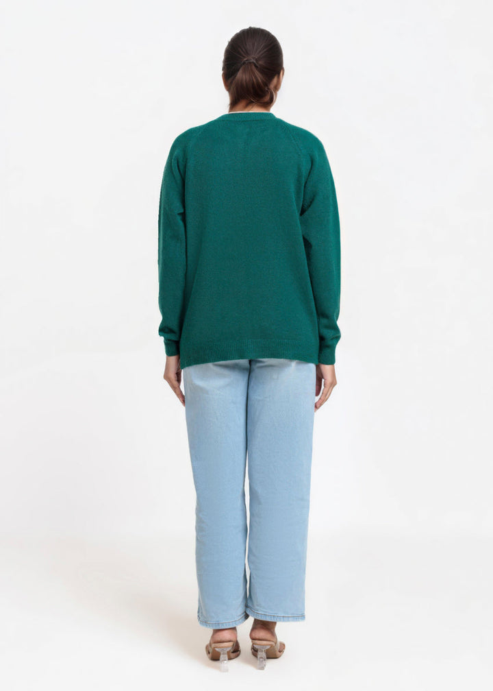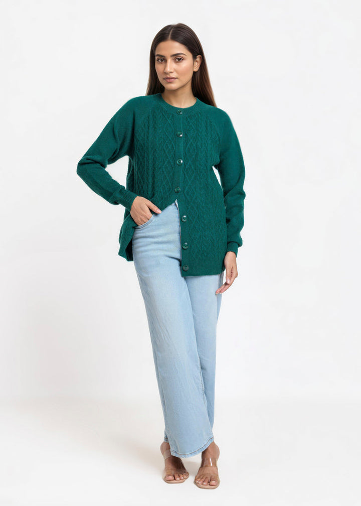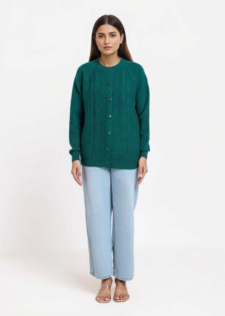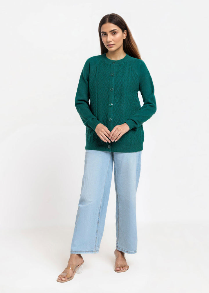 Em-Green-Round Neck Full Sleeves Cardigan Sweater (25Y-014-67)