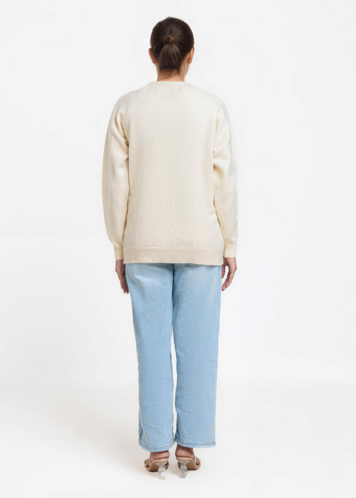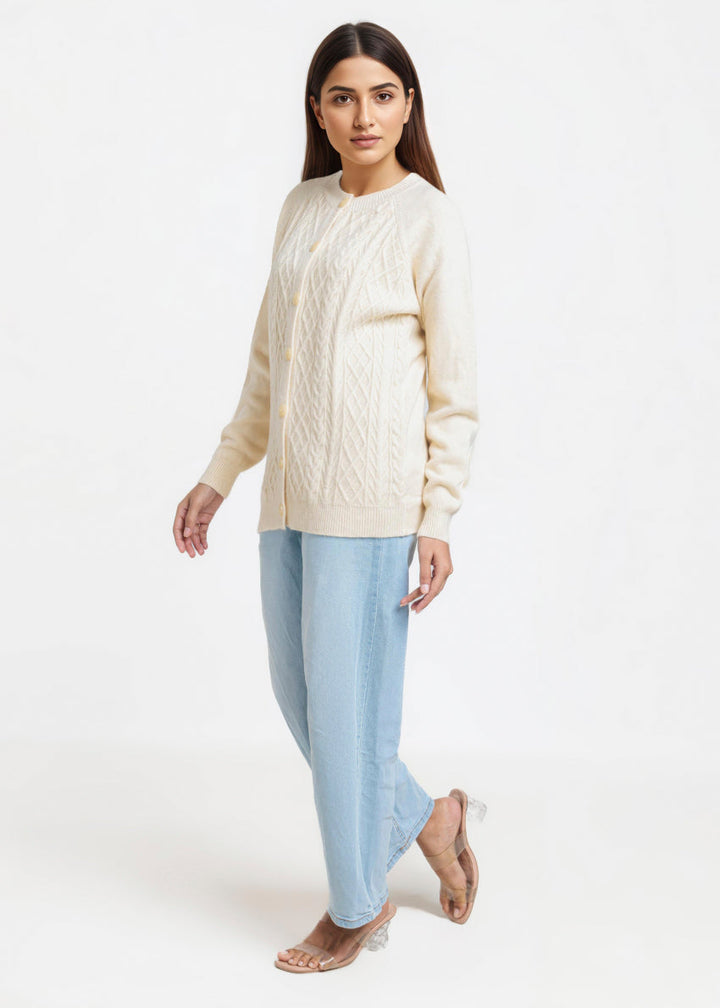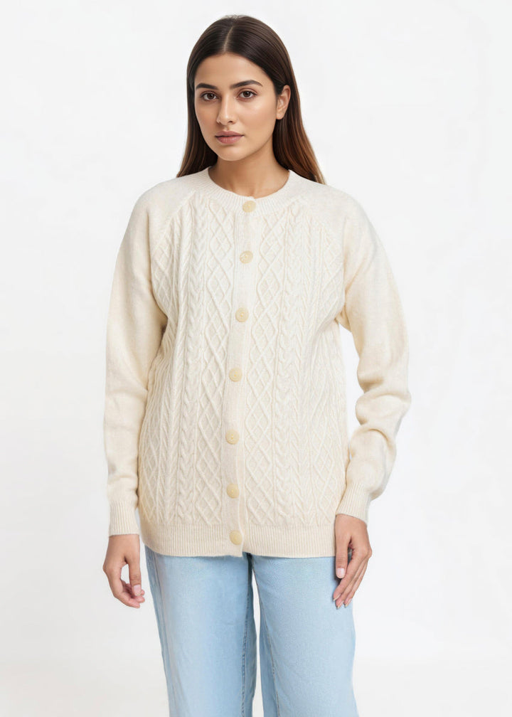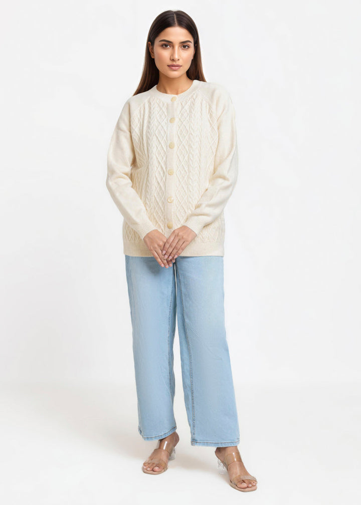 O-White-Round Neck Full Sleeves Cardigan Sweater (25Y-014-67)
