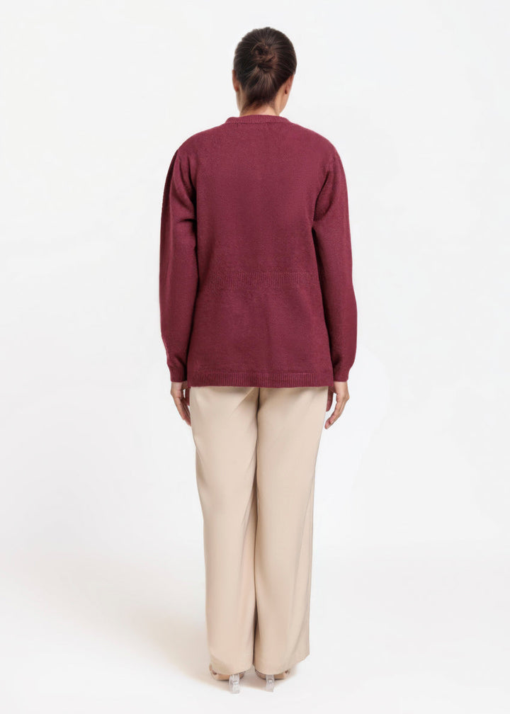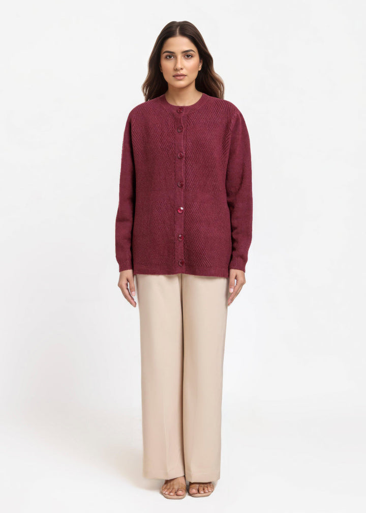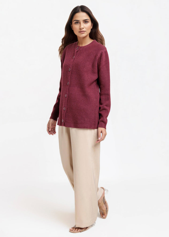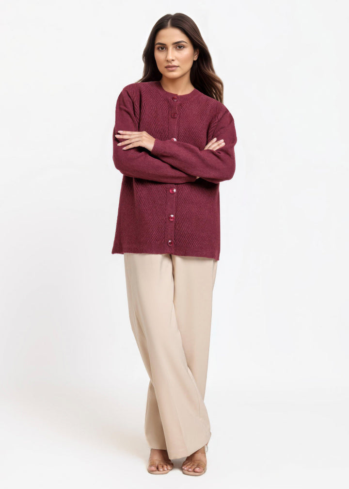 Maroon-Round Neck Full Sleeves Cardigan Sweater (25Y-016-67)