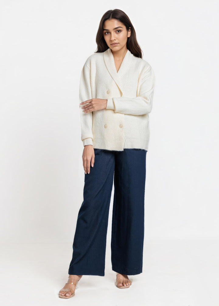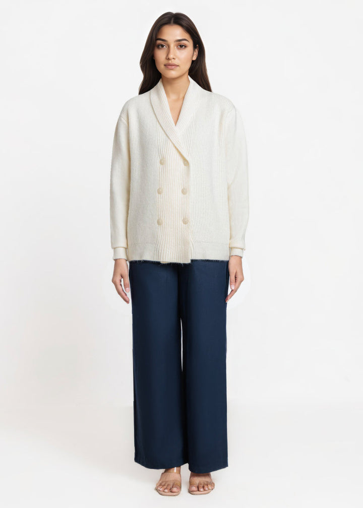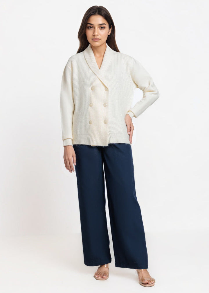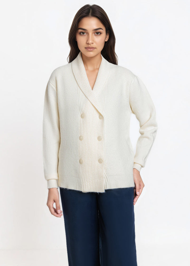 White-Shawl Collar Cardigan Full Sleeves Sweater (25Y-018-67)