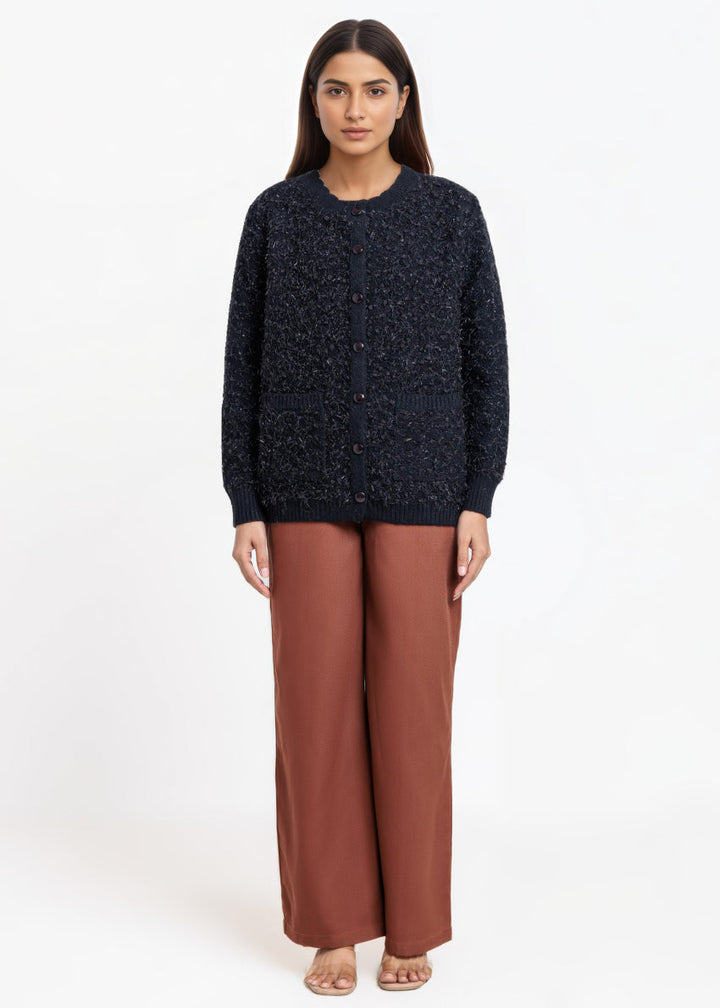 Black-Round Neck Full Sleeves Cardigan Sweater (25Y-021-67)