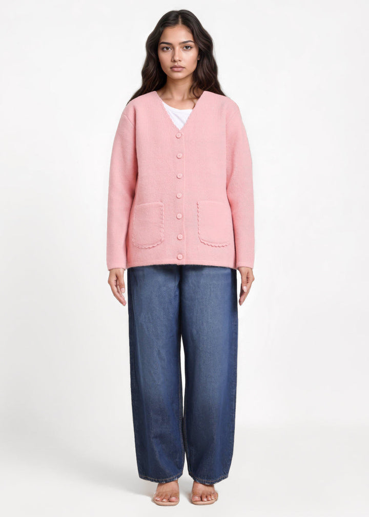Pink-V-Cardigan Full Sleeves Sweater (25Y-022-67)