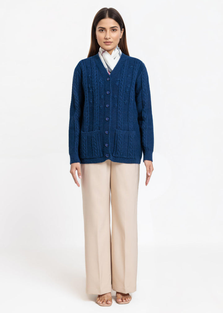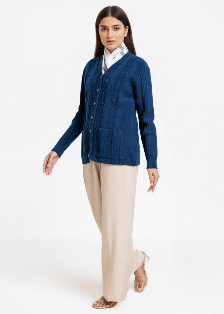 Navy-V-Cardigan Full Sleeves Sweater (25Y-025-67)