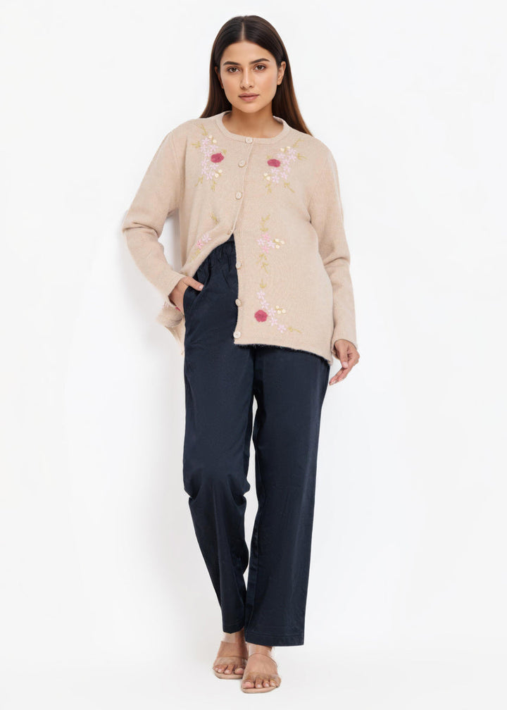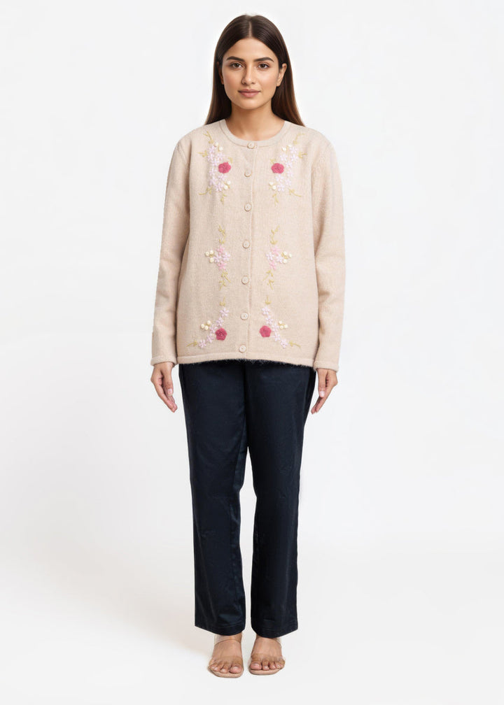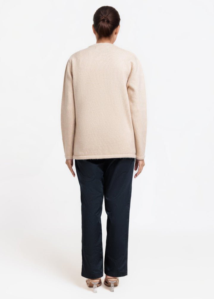 Beige-Round Neck Full Sleeves Cardigan Sweater (25Y-031-67)