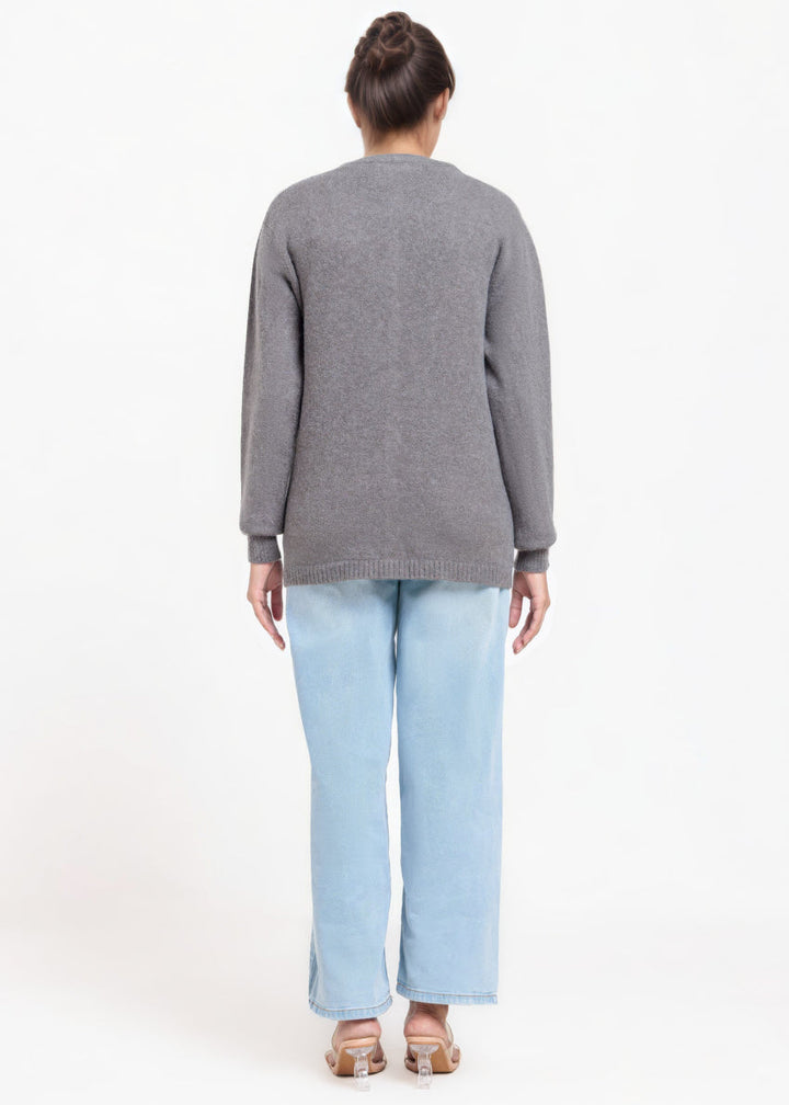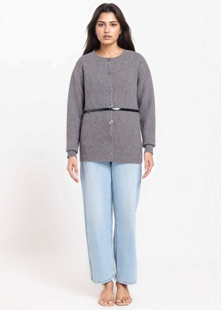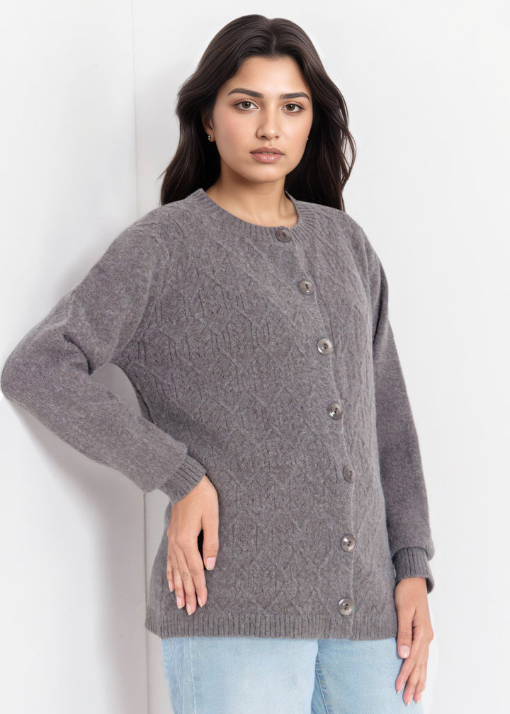 Charcoal-Round Neck Full Sleeves Cardigan Sweater (25Y-055-67)