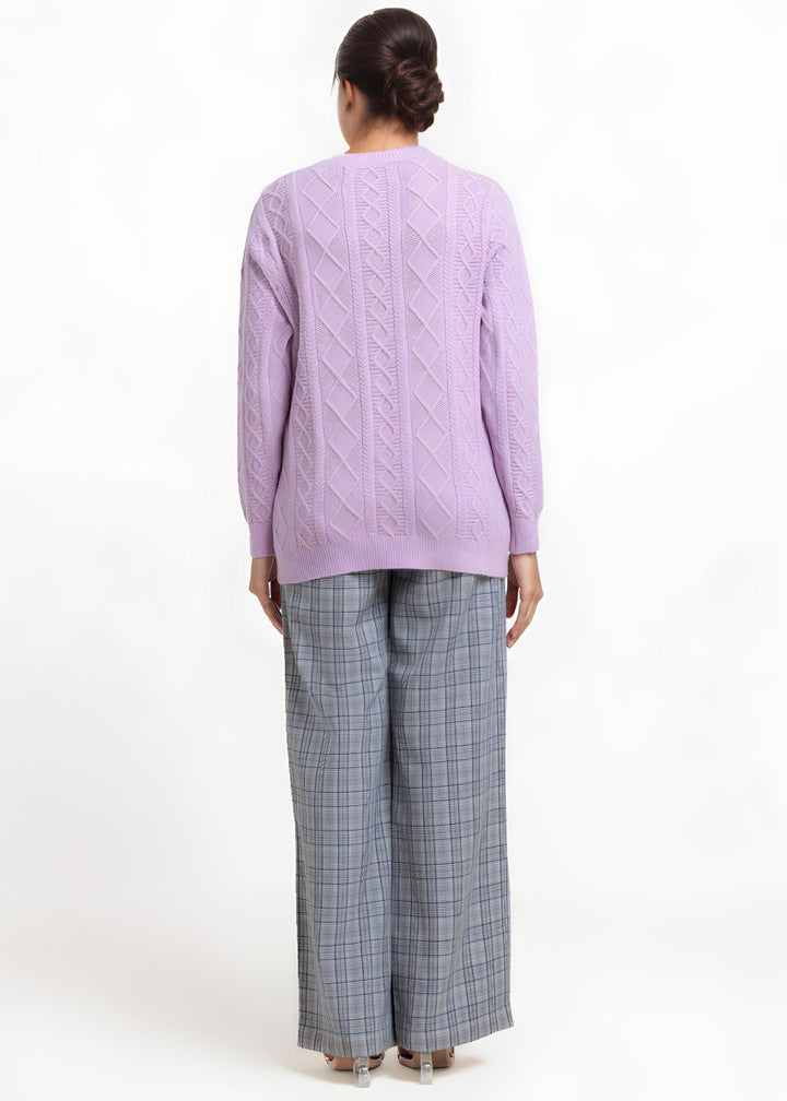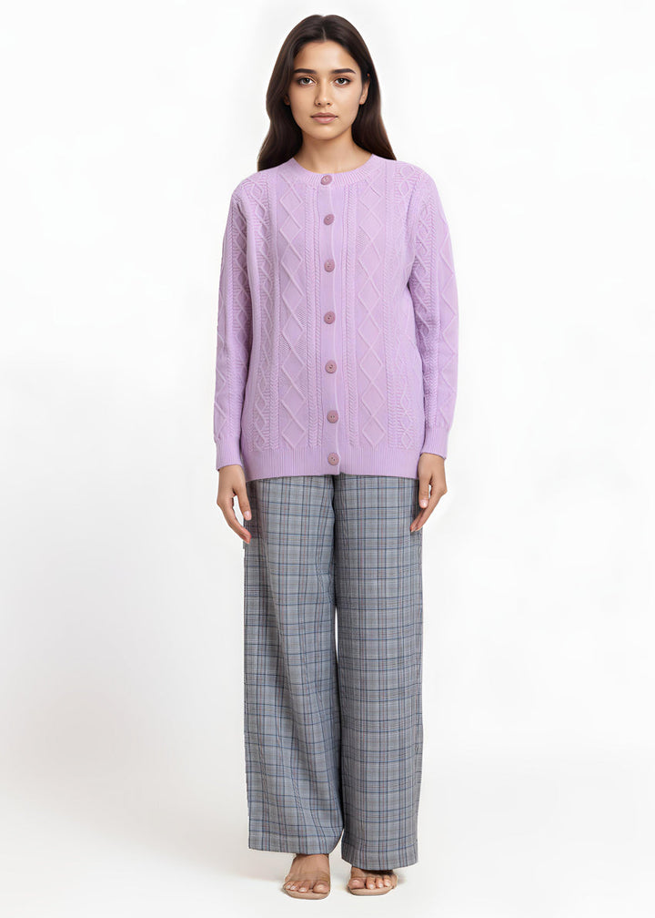 Lavender-Round Neck Full Sleeves Cardigan Sweater (25Y-057-67)