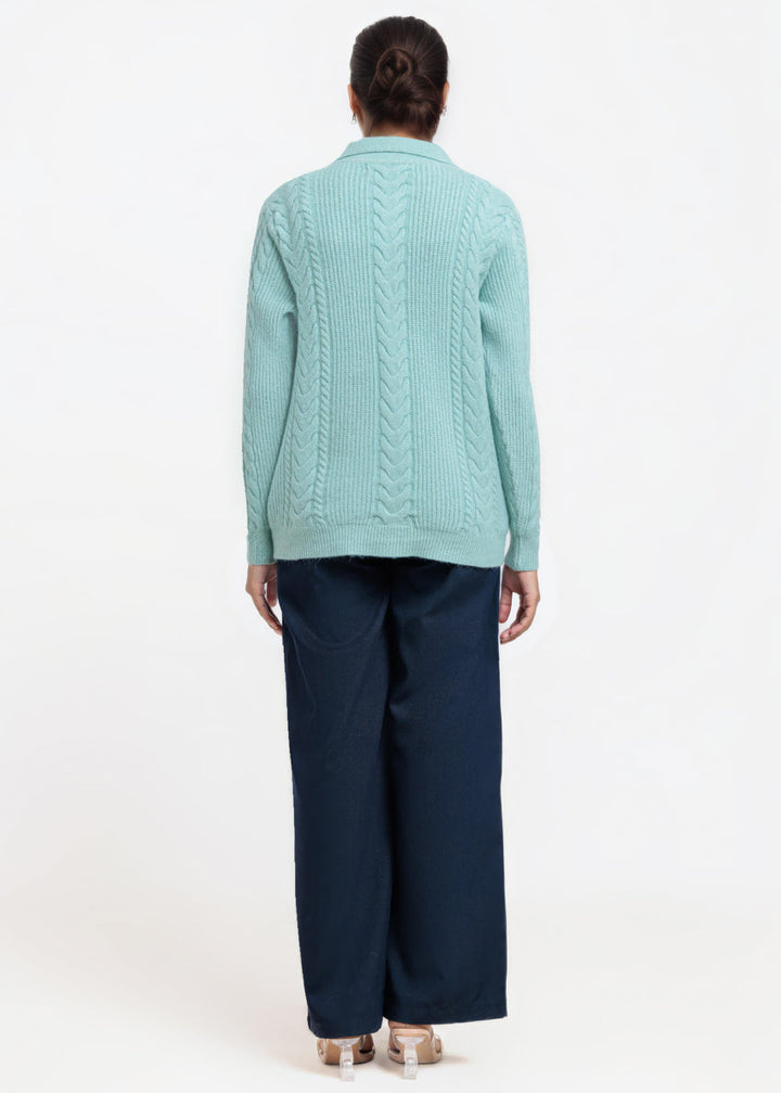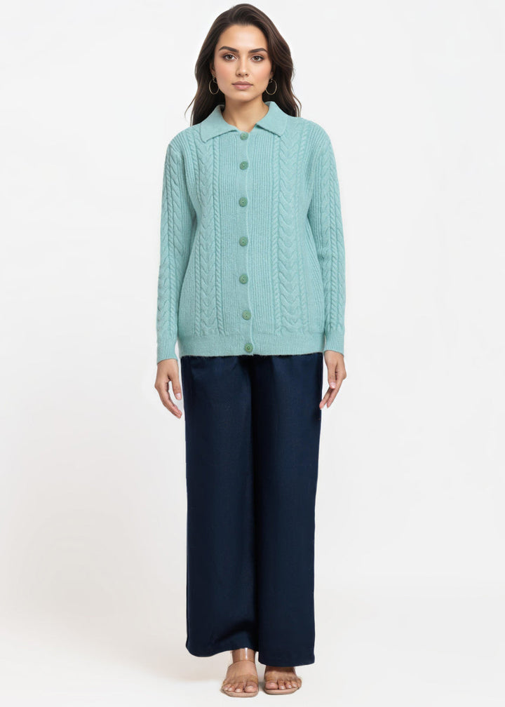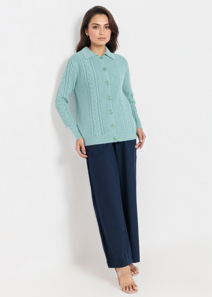 L-Green-Wing Collar Cardigan Full Sleeves Sweater (25Y-059-67)