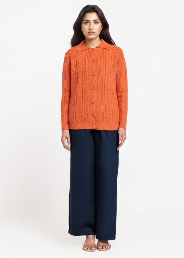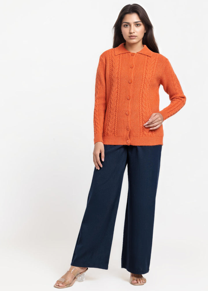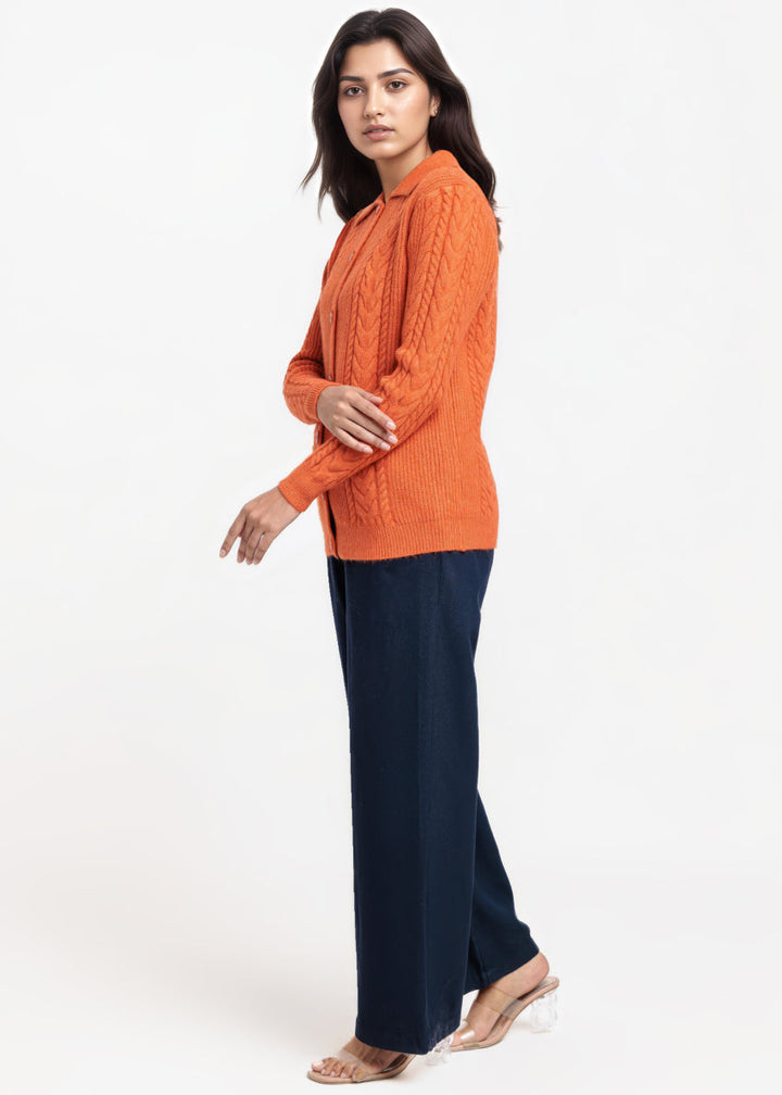 Rust-Wing Collar Cardigan Full Sleeves Sweater (25Y-059-67)