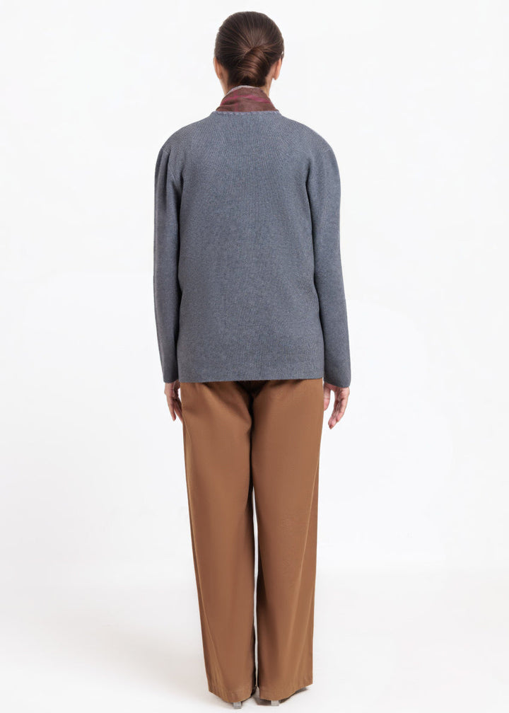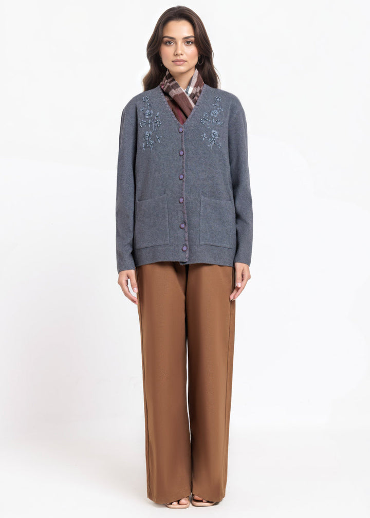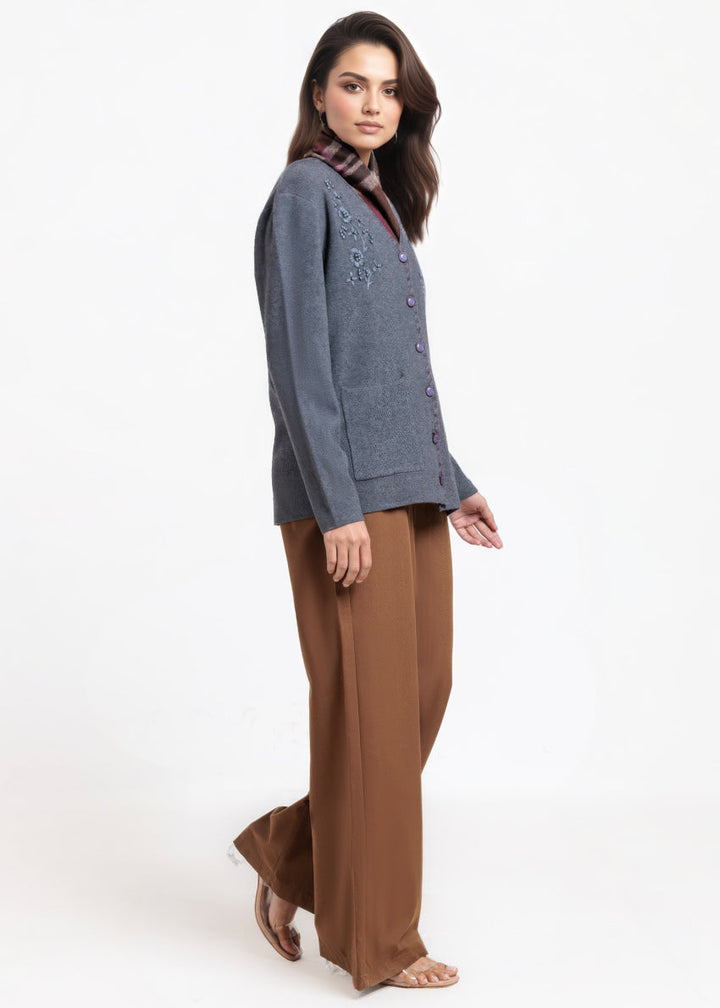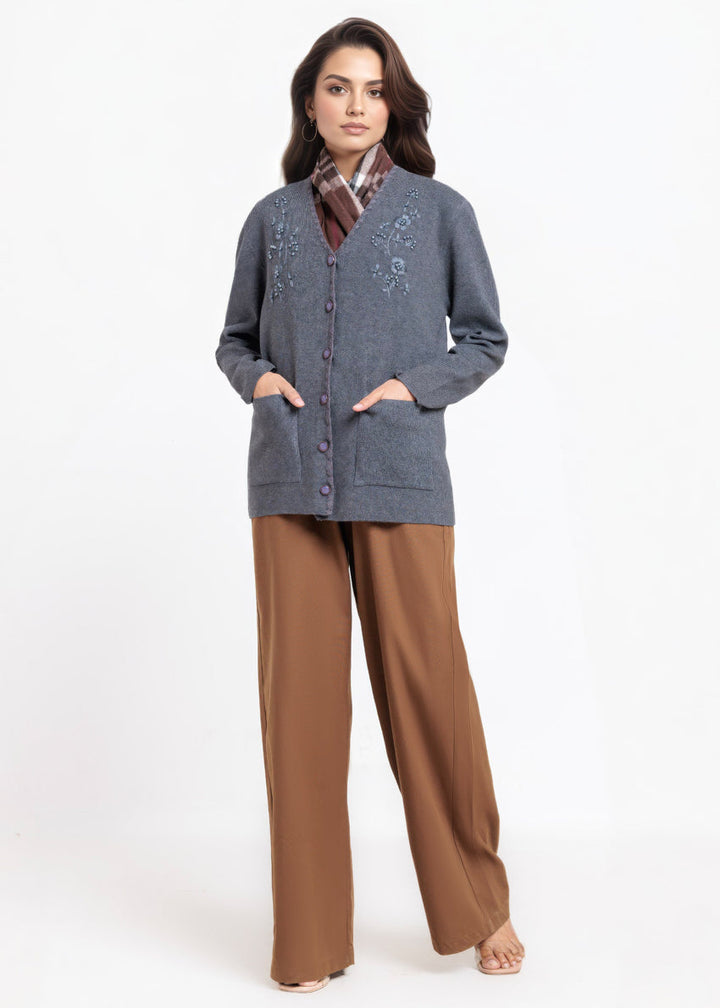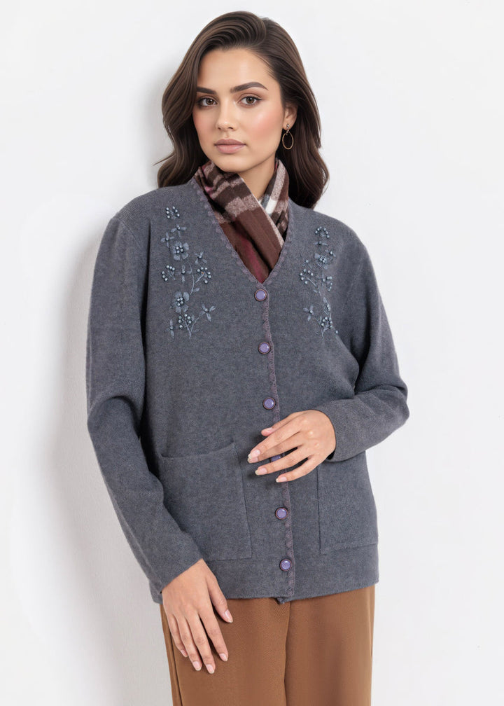 Charcoal-V-Cardigan Full Sleeves Sweater (25Y-060-67)