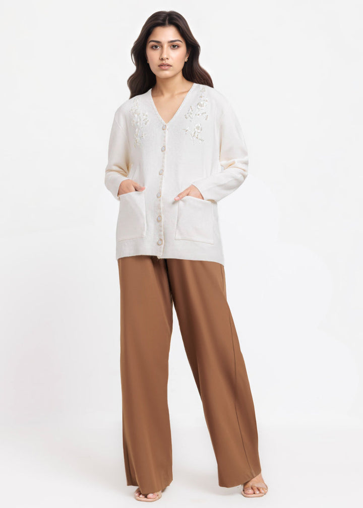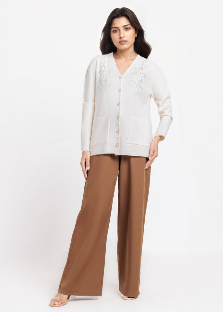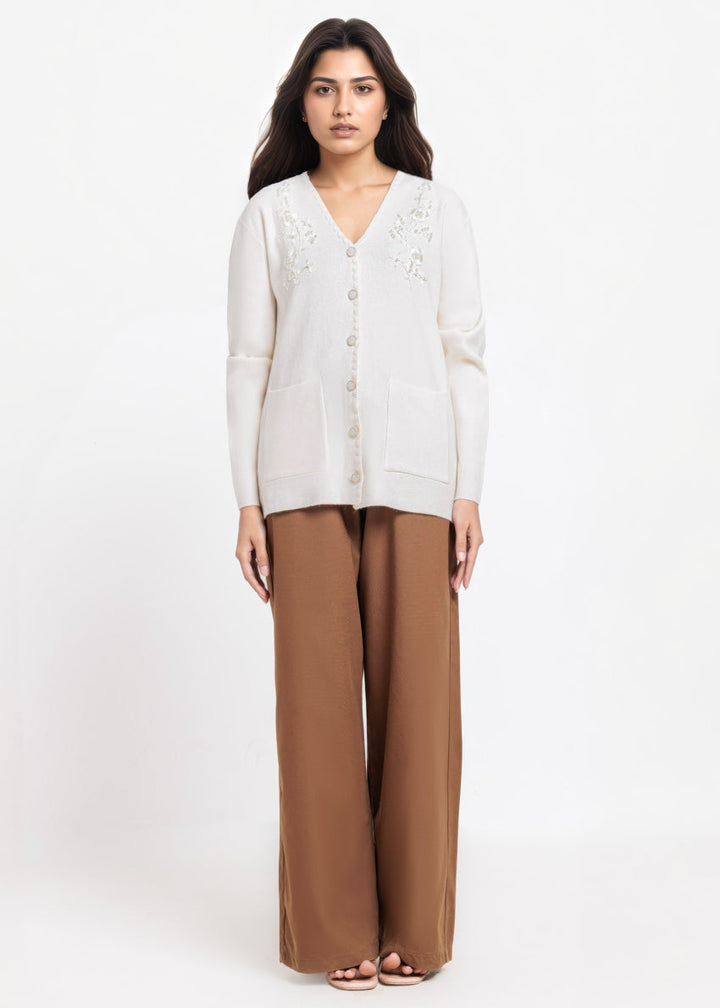 O-White-V-Cardigan Full Sleeves Sweater (25Y-060-67)