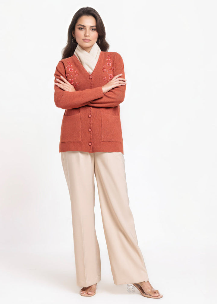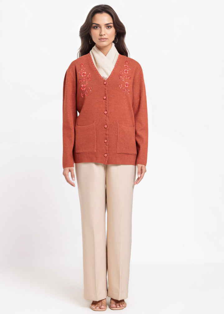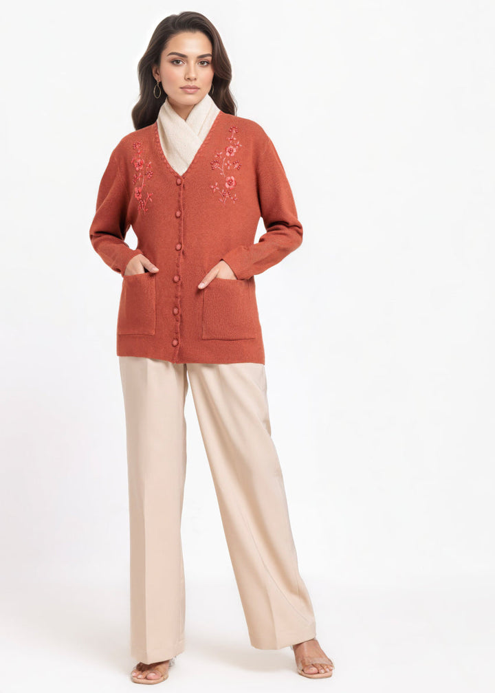 Rust-V-Cardigan Full Sleeves Sweater (25Y-060-67)