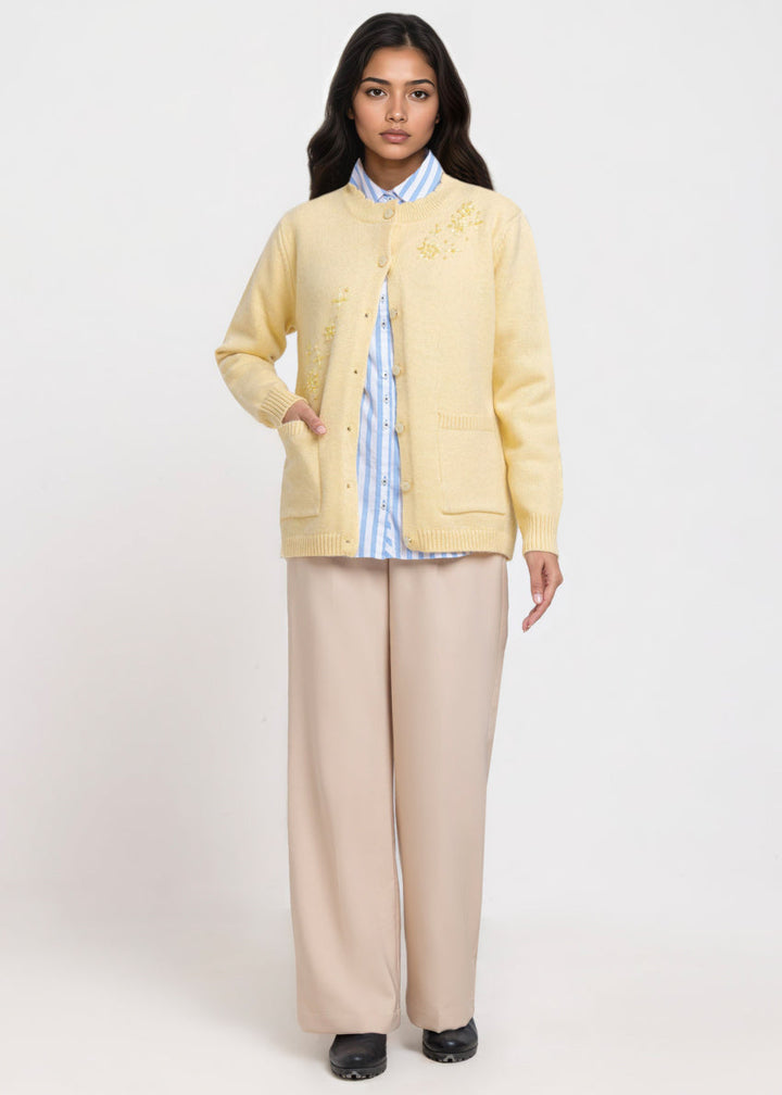 Lemon-Round Neck Full Sleeves Cardigan Sweater (25Y-061-67)