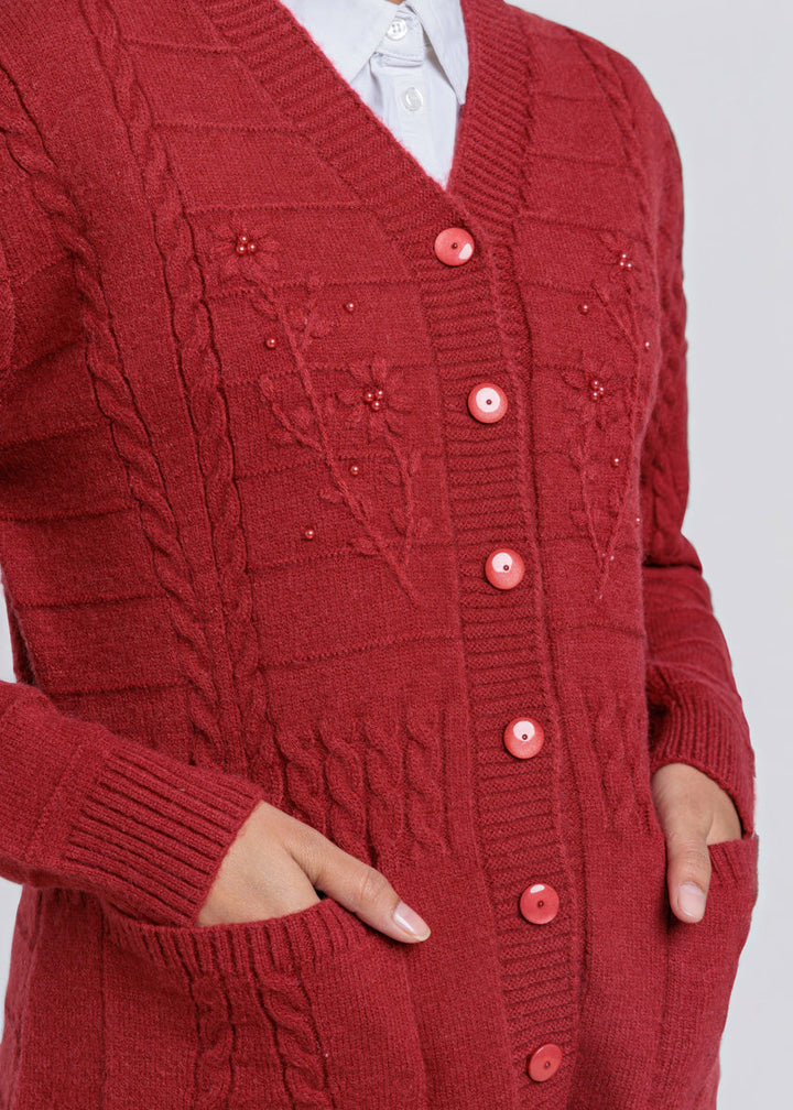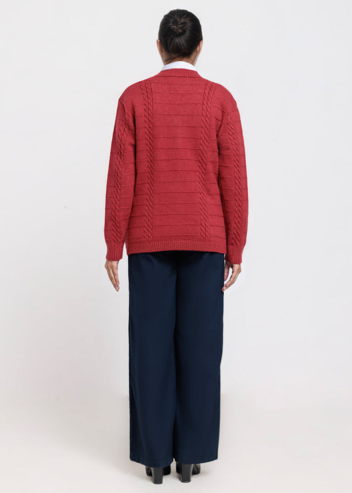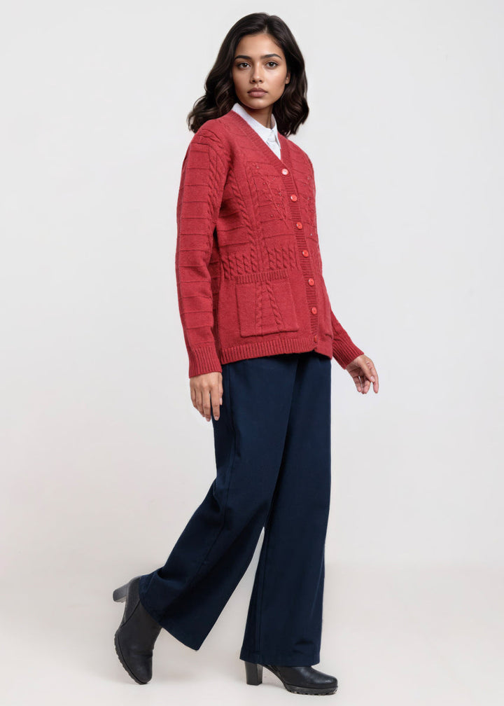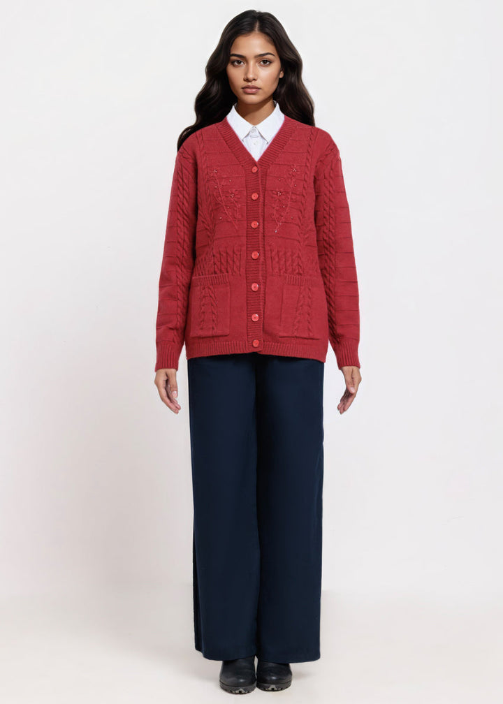 Red-V-Cardigan Full Sleeves Sweater (25Y-062-67)