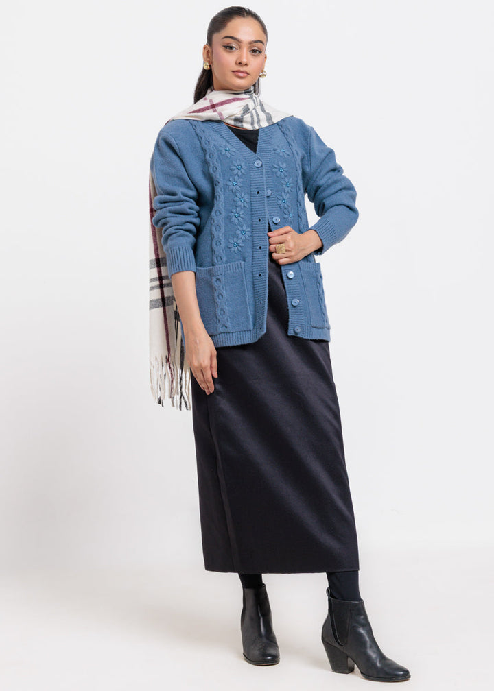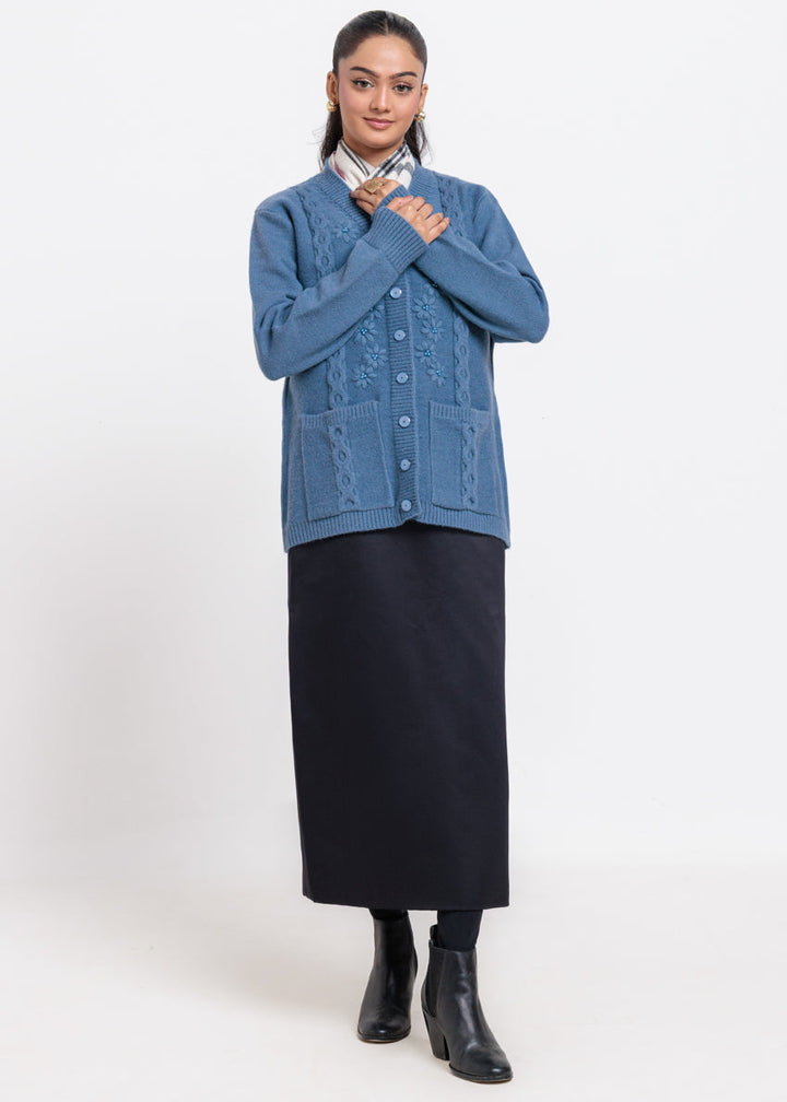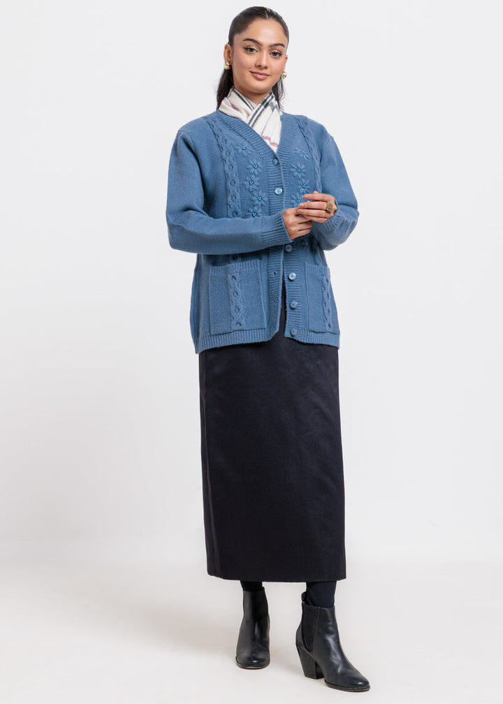 Blue-V-Cardigan Full Sleeves Sweater (25Y-063-67)