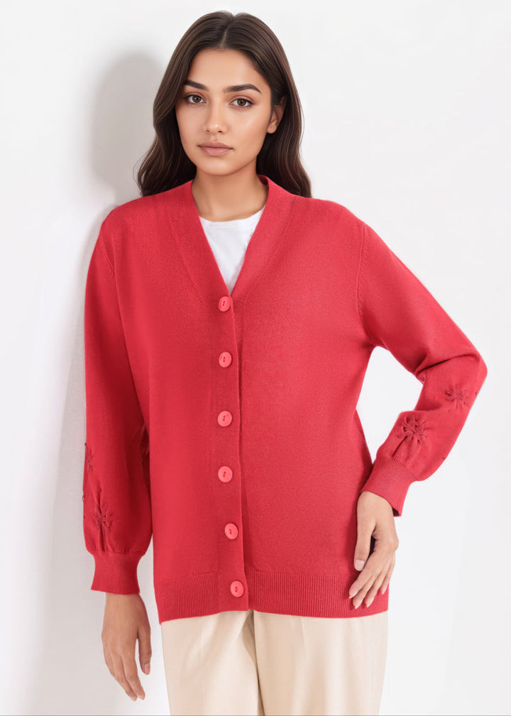 Red-V-Cardigan Full Sleeves Sweater (25Y-064-67)
