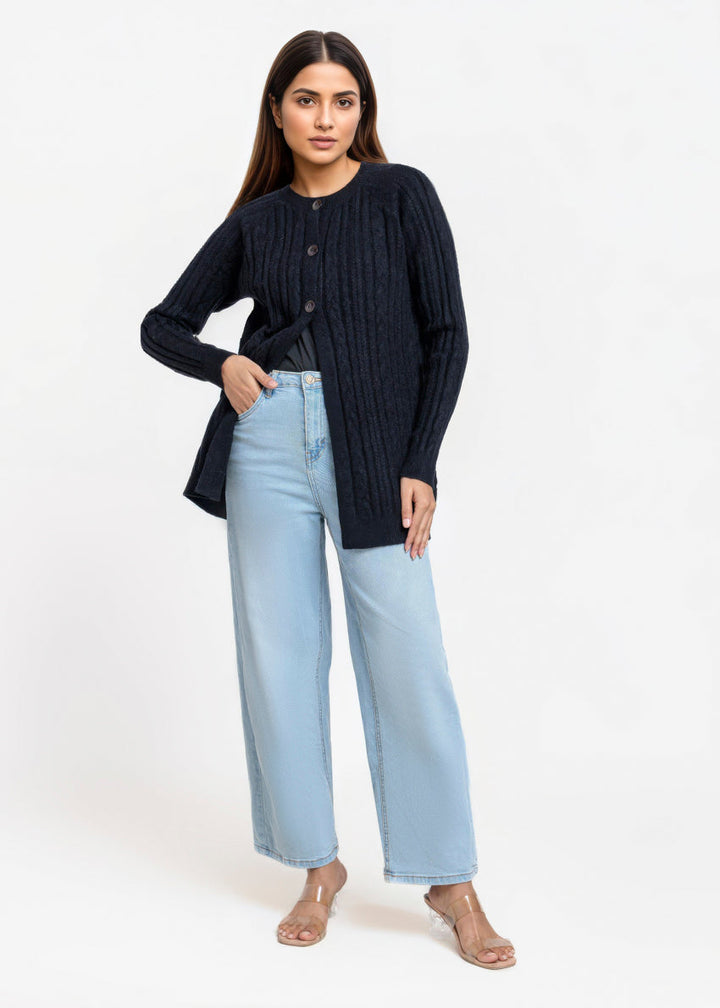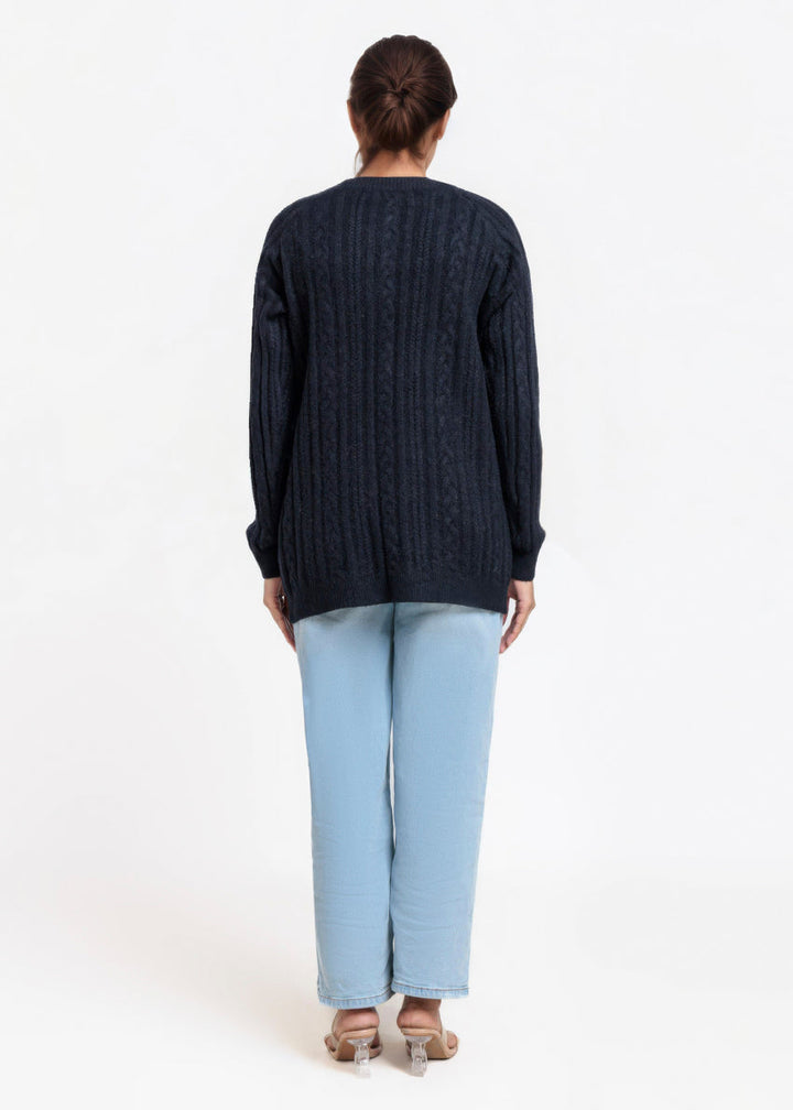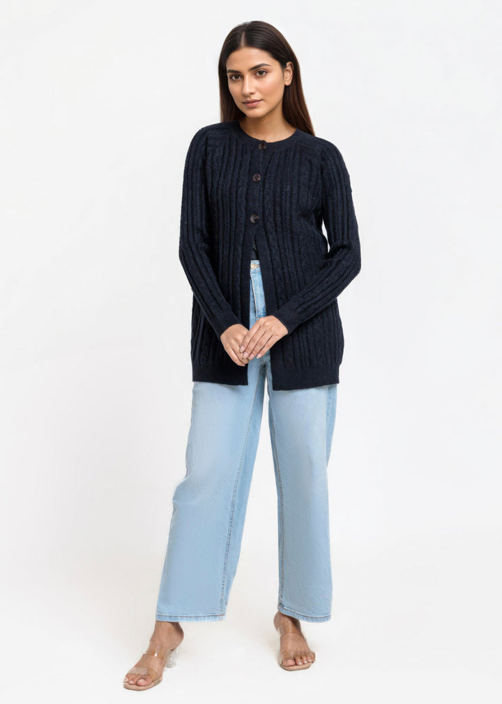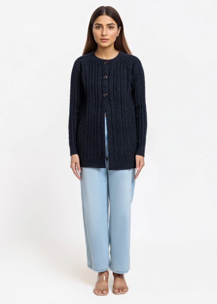 Black-Round Neck Full Sleeves Cardigan Sweater (25Y-068-67)