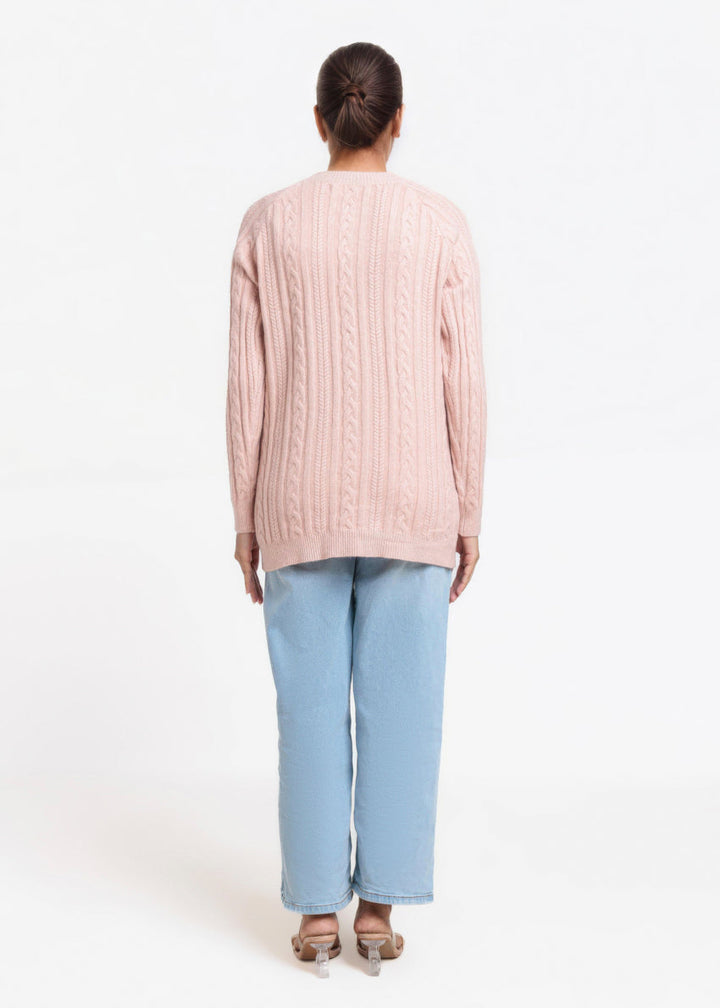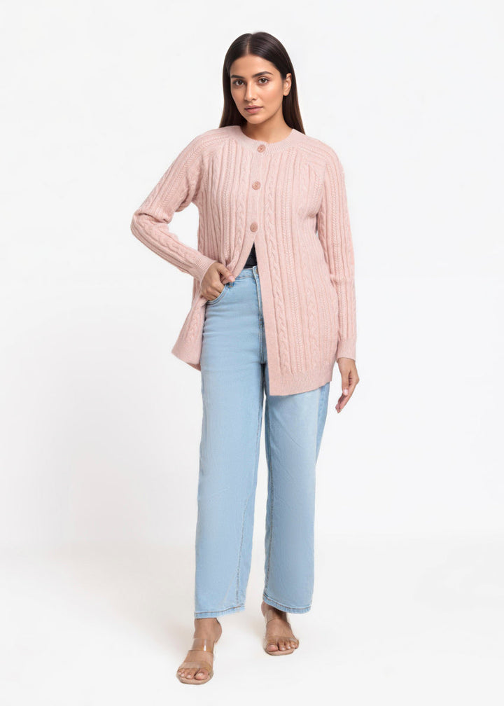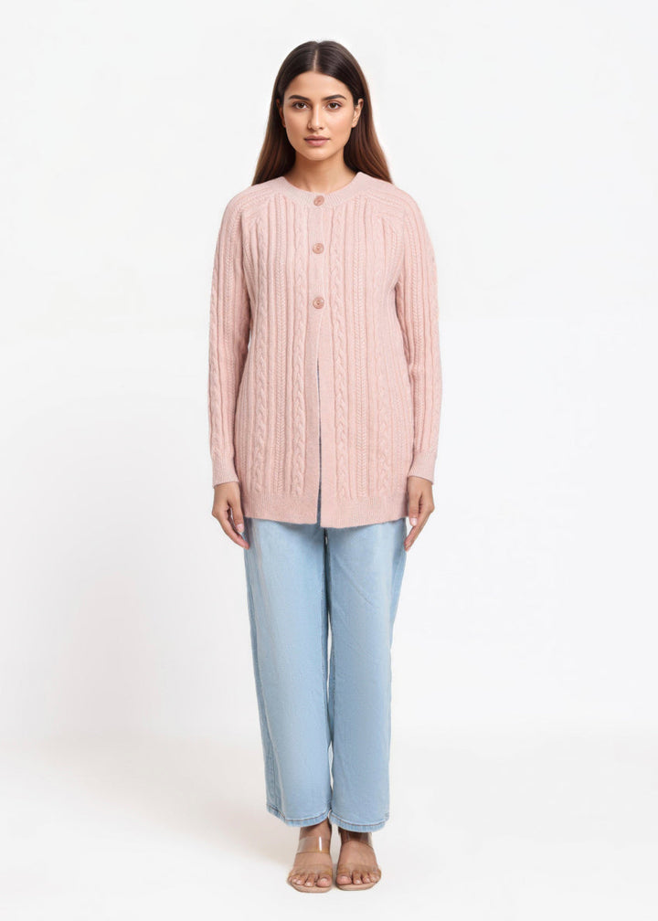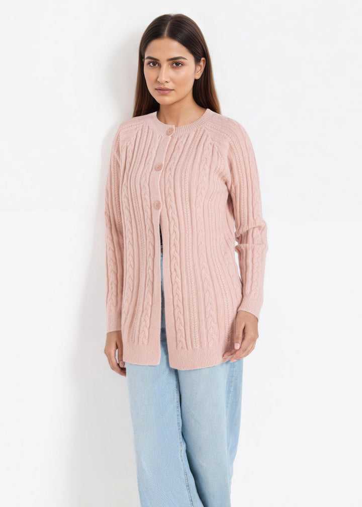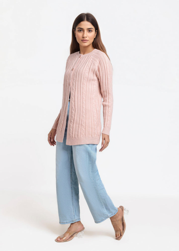 Peach-Round Neck Full Sleeves Cardigan Sweater (25Y-068-67)