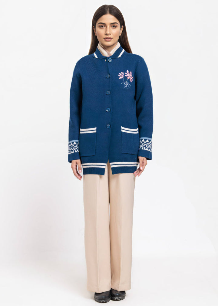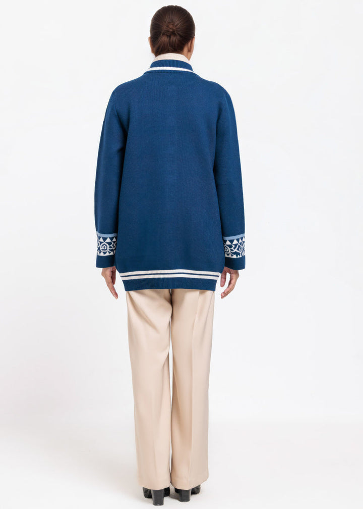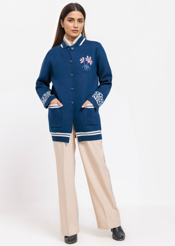 Navy-Baseball Collar Full Sleeves Cardigan Sweater (25Y-072-67)