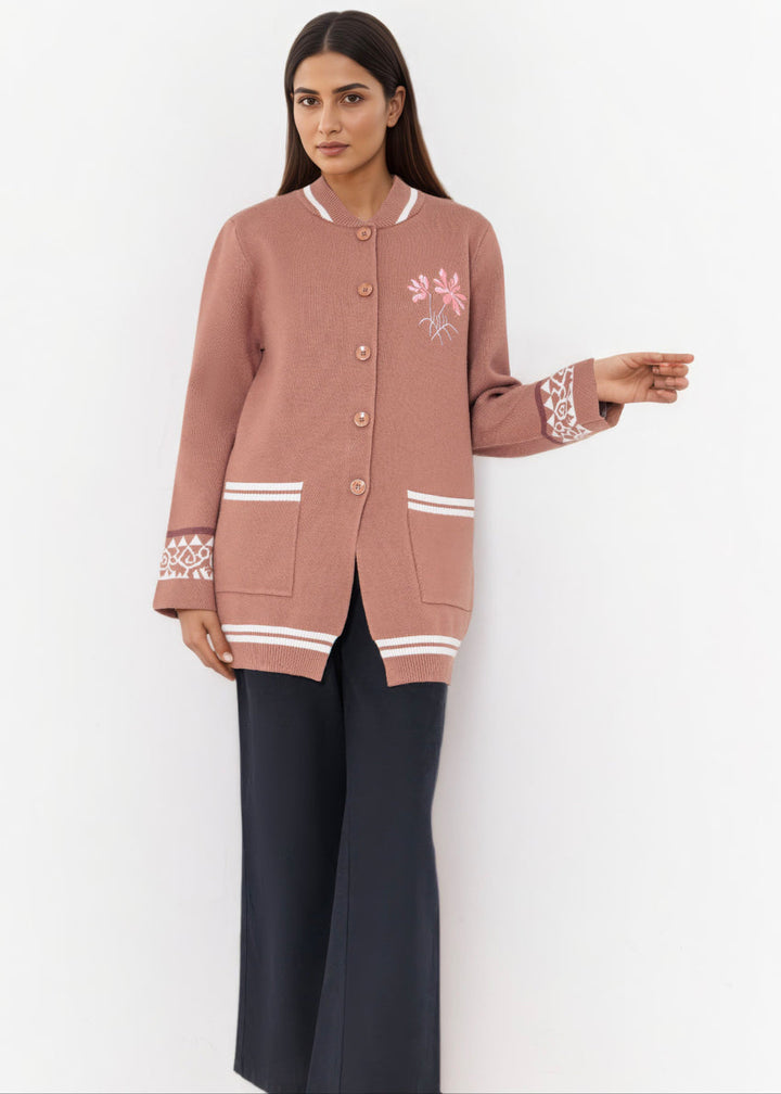 Sand-Baseball Collar Full Sleeves Cardigan Sweater (25Y-072-67)