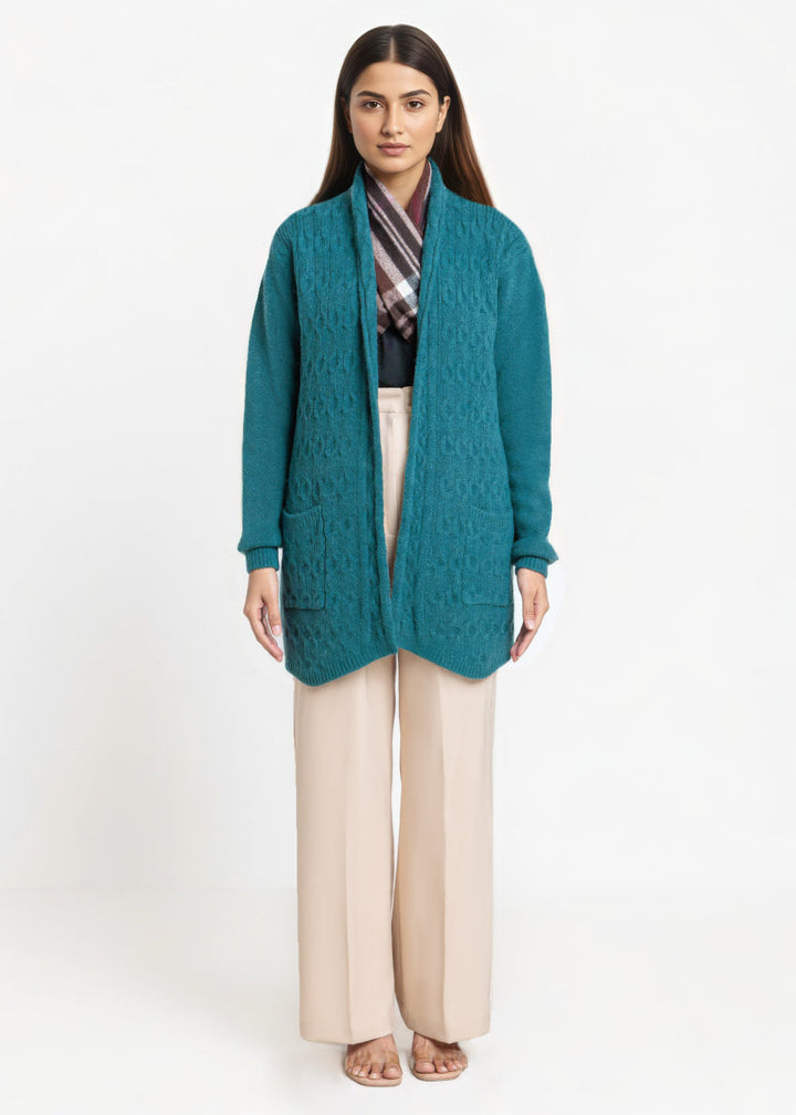 Green-Shawl Collar Full Sleeves Cardigan Sweater (25Y-078-67)