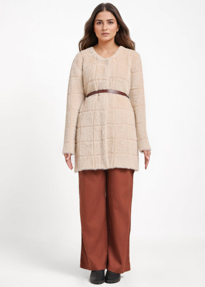 Beige-Round Neck Full Sleeves Cardigan Sweater (25Y-081-67)