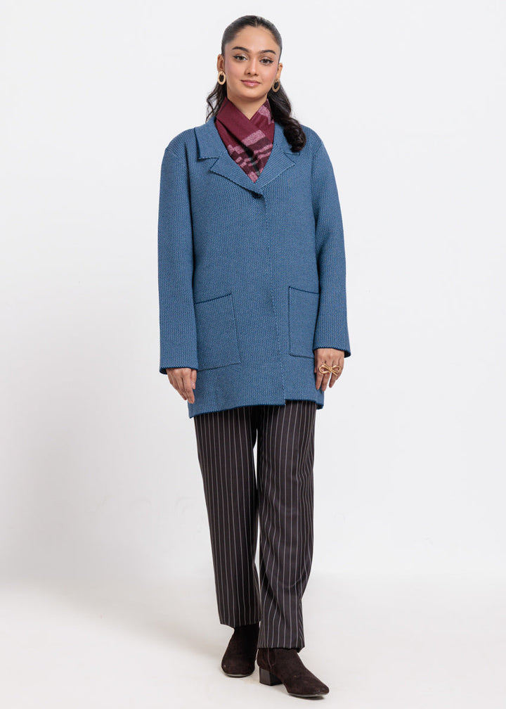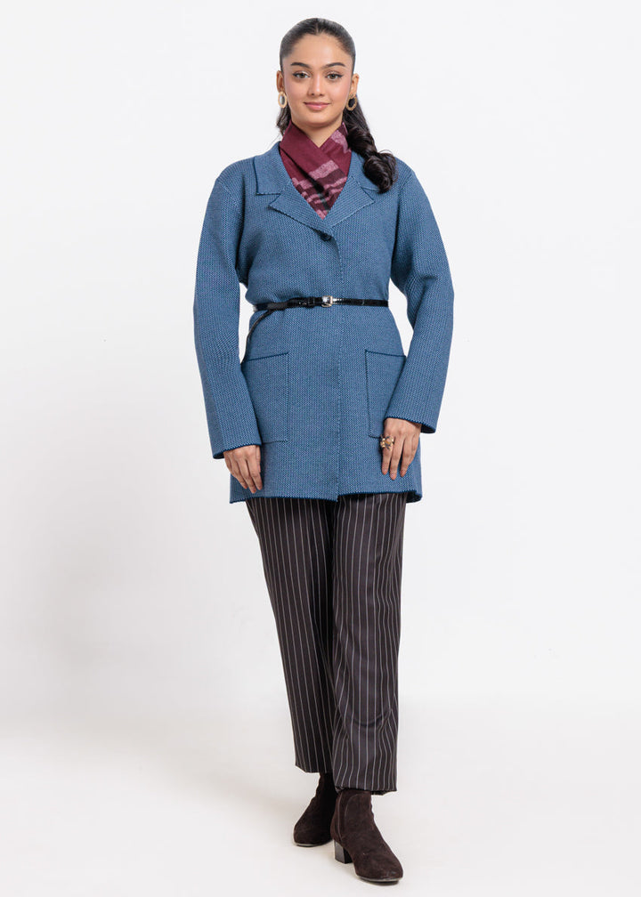 Blue-Notched Collar Full Sleeves Cardigan Sweater (25Y-106-67)