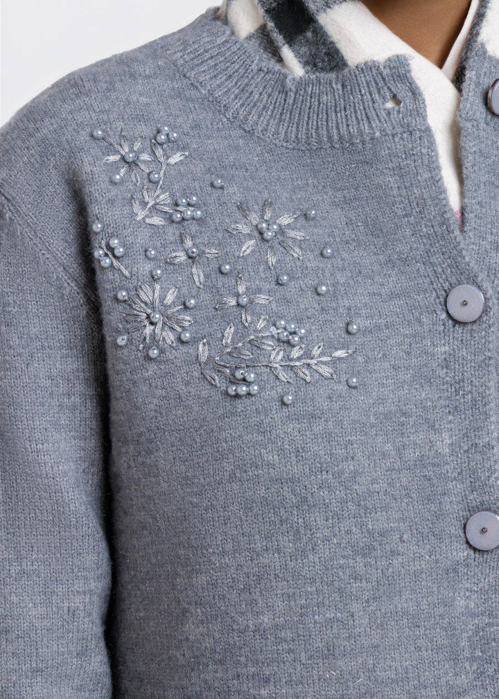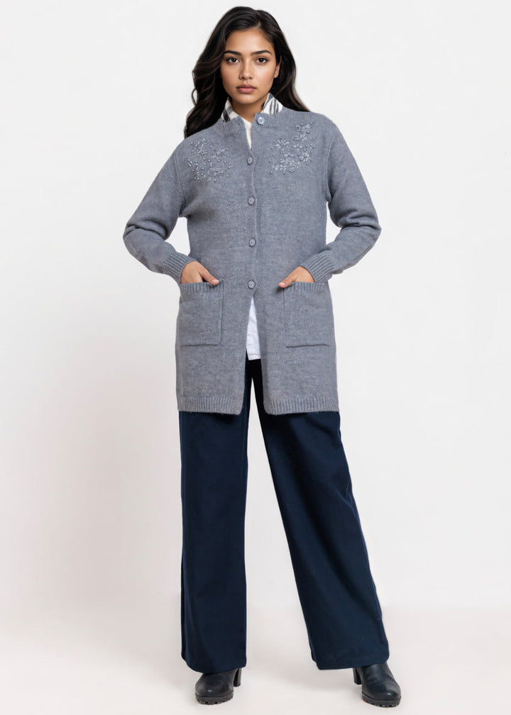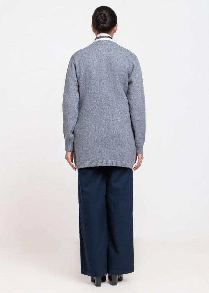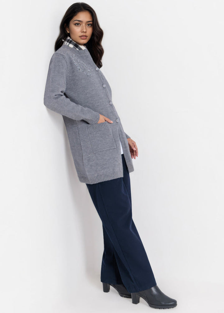 Grey-Round Neck Full Sleeves Cardigan Sweater (25Y-107-67)