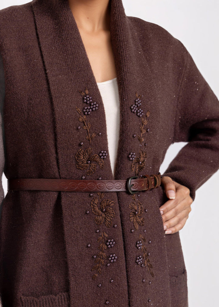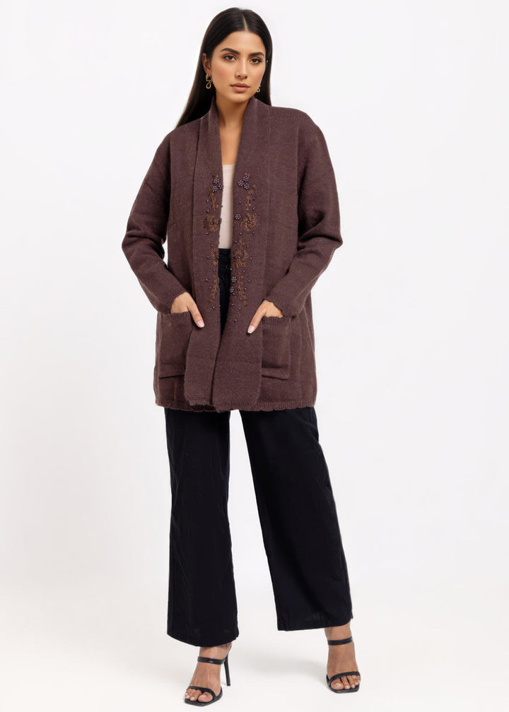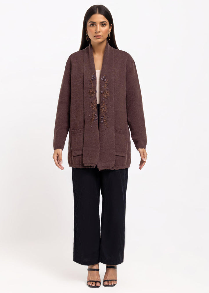 Brown-V-Cardigan Full Sleeves Sweater (25Y-108-67)