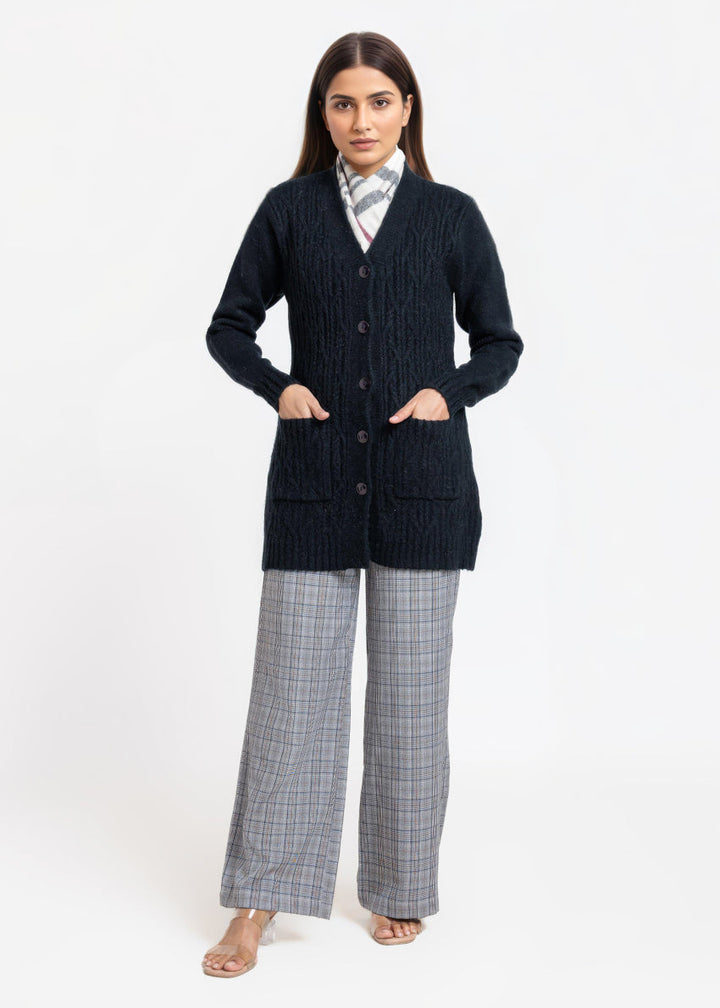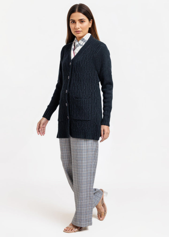 Black-V-Cardigan Full Sleeves Sweater (25Y-110-67)