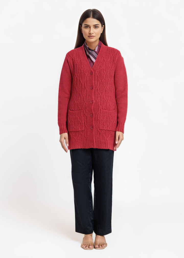 Maroon-V-Cardigan Full Sleeves Sweater (25Y-110-67)
