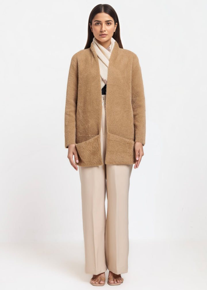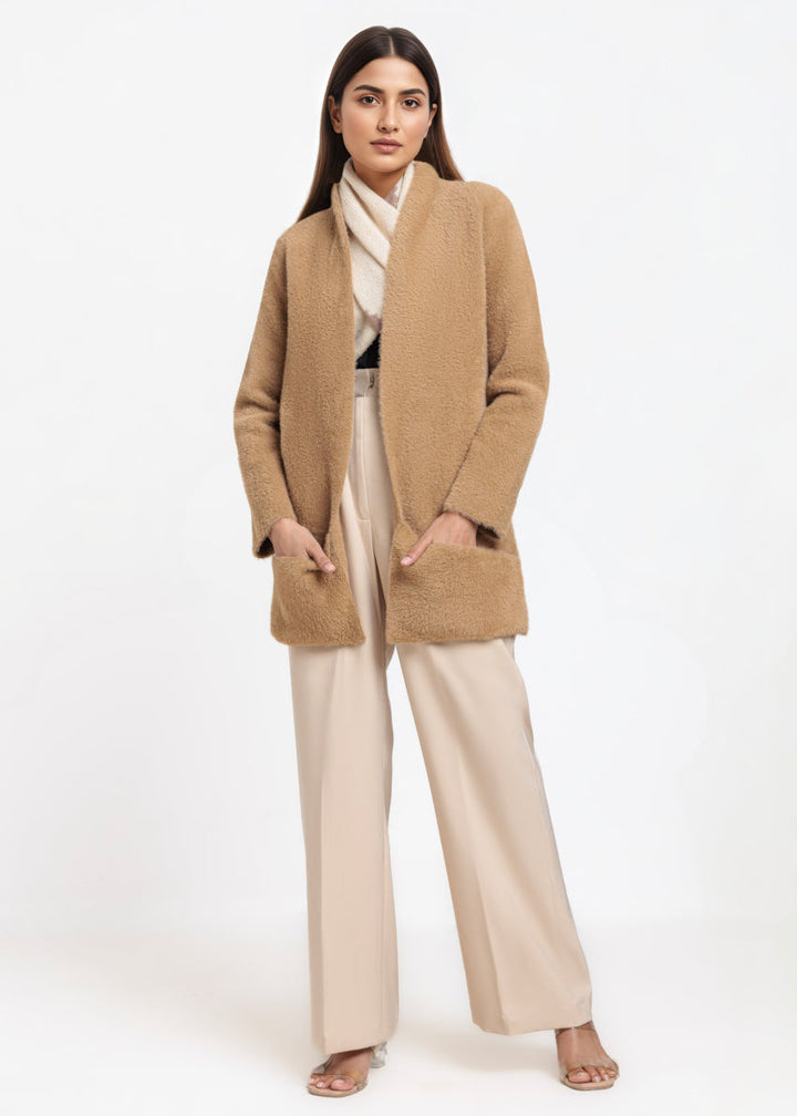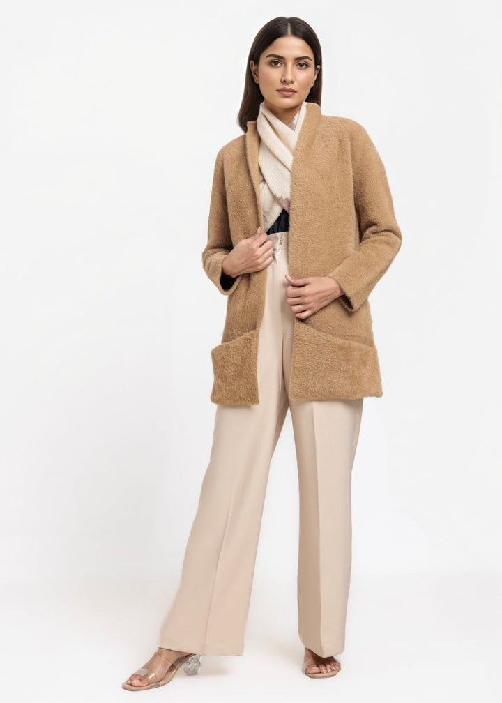 Khaki-Round Neck Full Sleeves Cardigan Sweater (25Y-111-67)