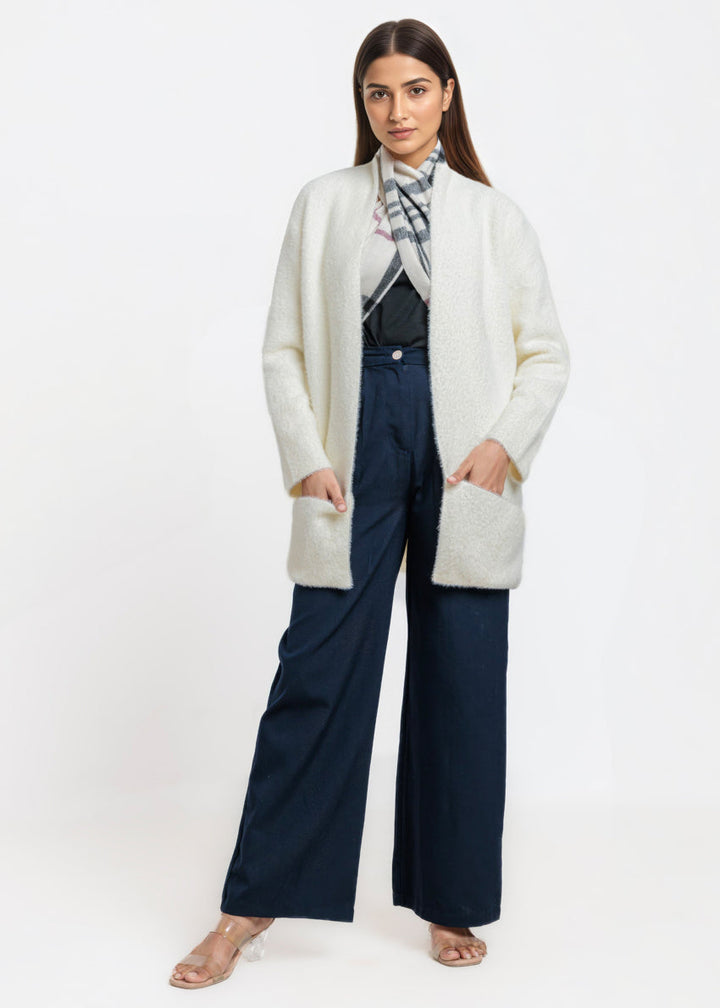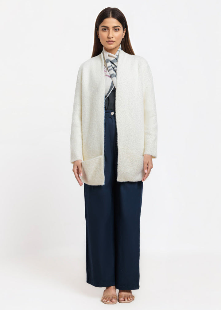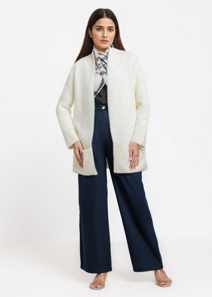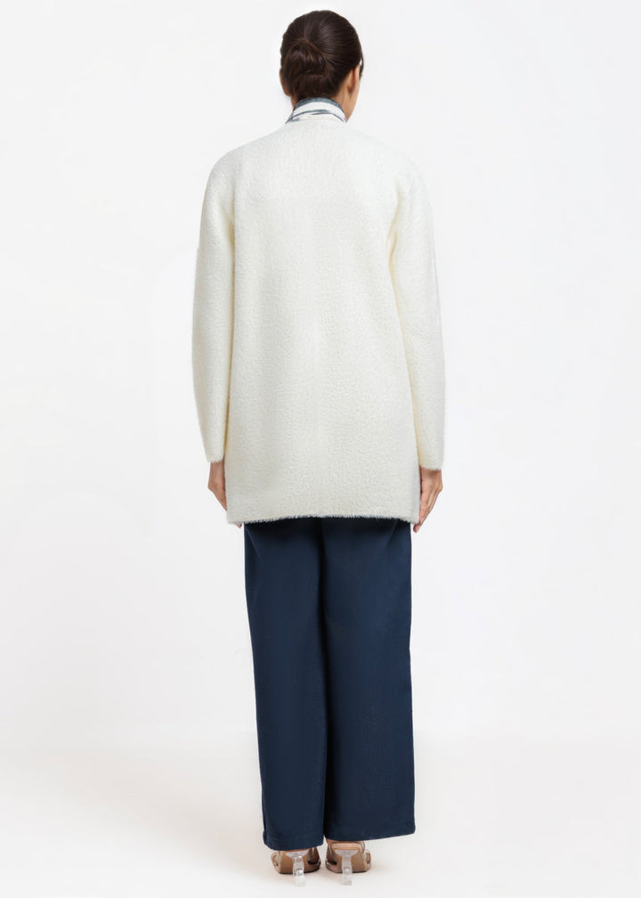 O-White-Round Neck Full Sleeves Cardigan Sweater (25Y-111-67)
