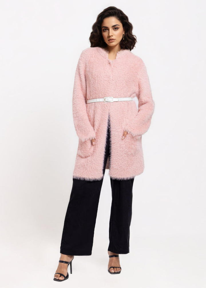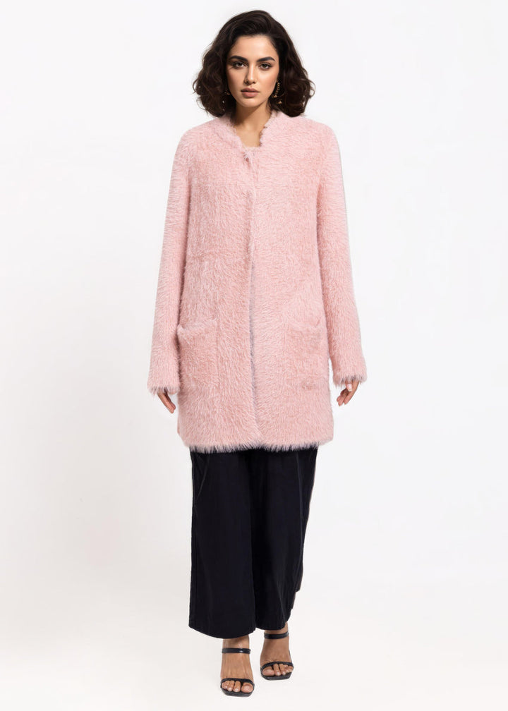 Pink-Round Neck Full Sleeves Cardigan Sweater (25Y-112-67)