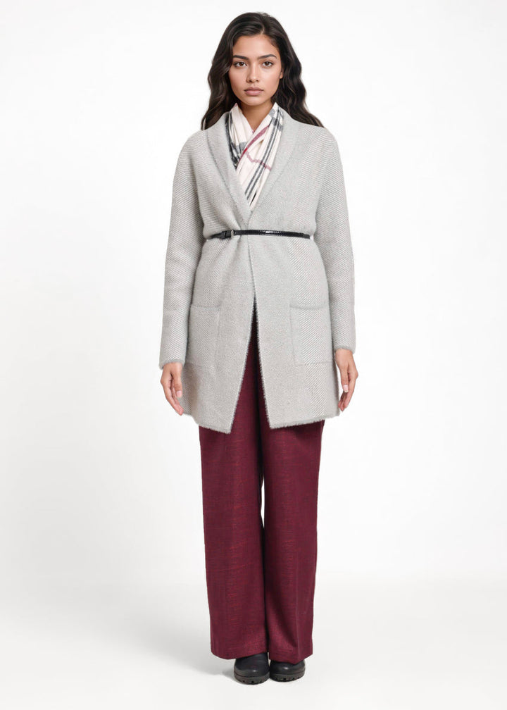 Grey-Shawl Collar Full Sleeves Cardigan Sweater (25Y-120-67)